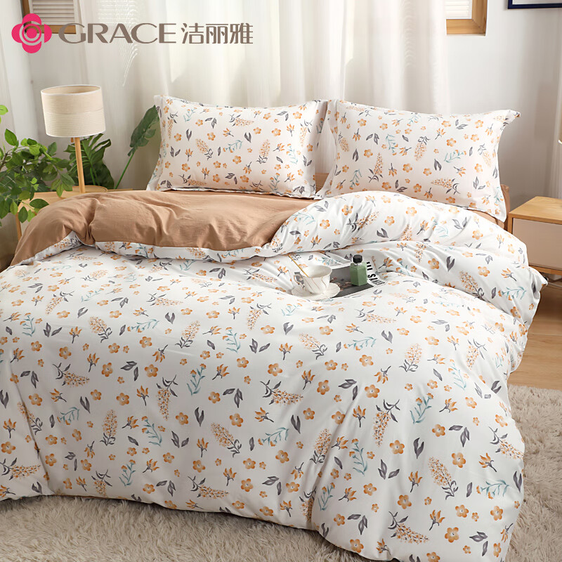 洁丽雅/GRACE JLY-YHE118被子/被单 洁丽雅Grace水洗棉套件-花间妍 被套:200x230cm 床单:230x250cm 枕套:48x74cm*2