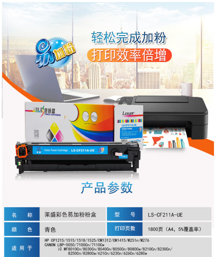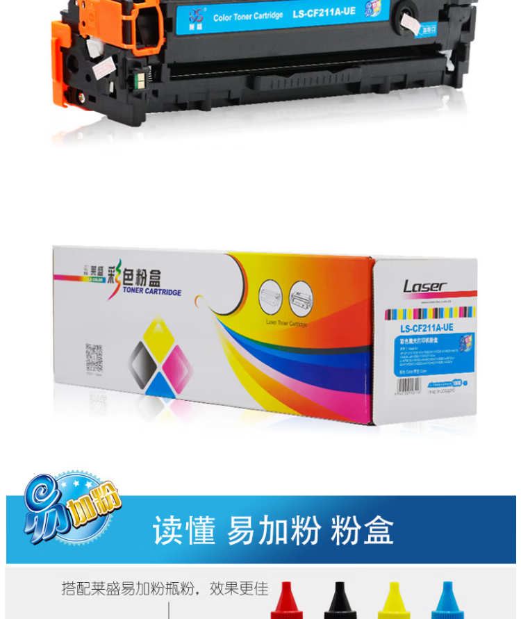 莱盛 LS-CF211A-UE 粉盒 易加粉 青色 全新 有芯片 1.8K 20支/箱