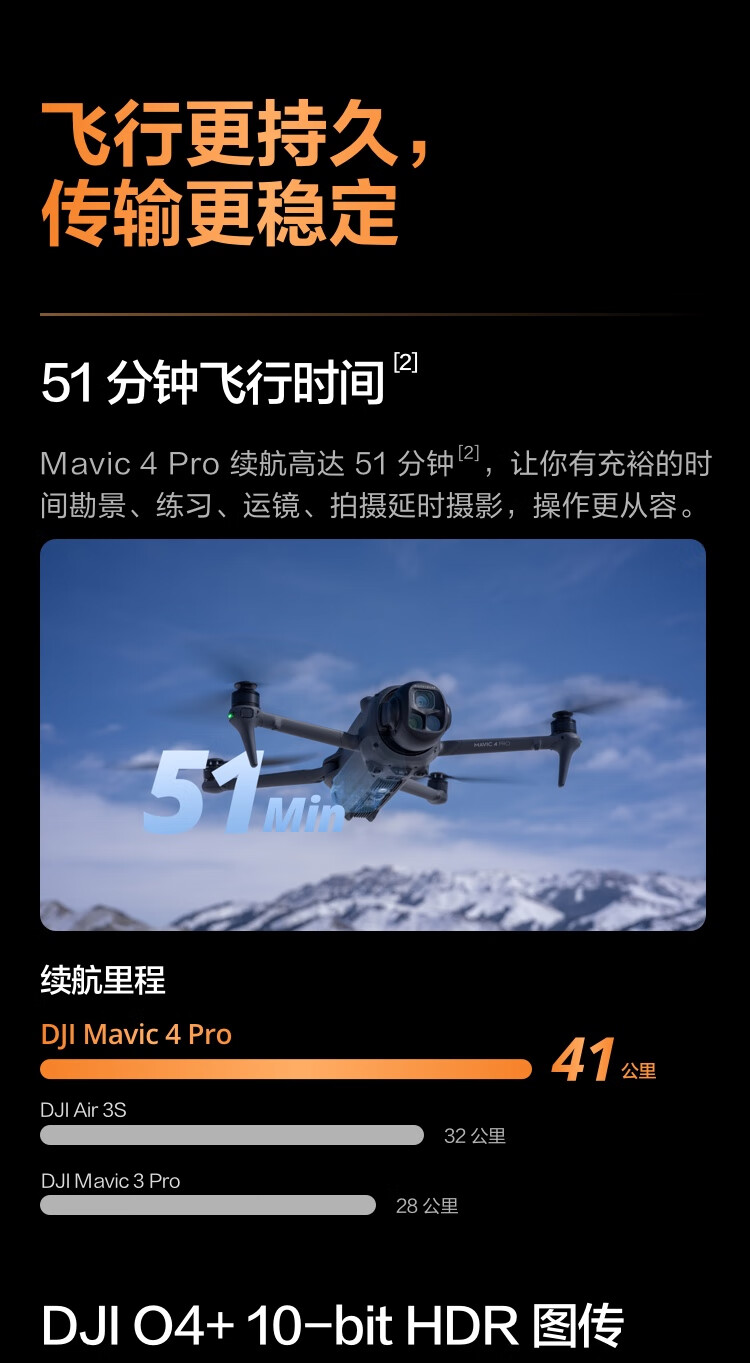 大疆/DJI Mavic 4 Pro无人机 御4Pro畅飞三电套装(DJI RC 2,增强图传) 官方标配 (128GB)