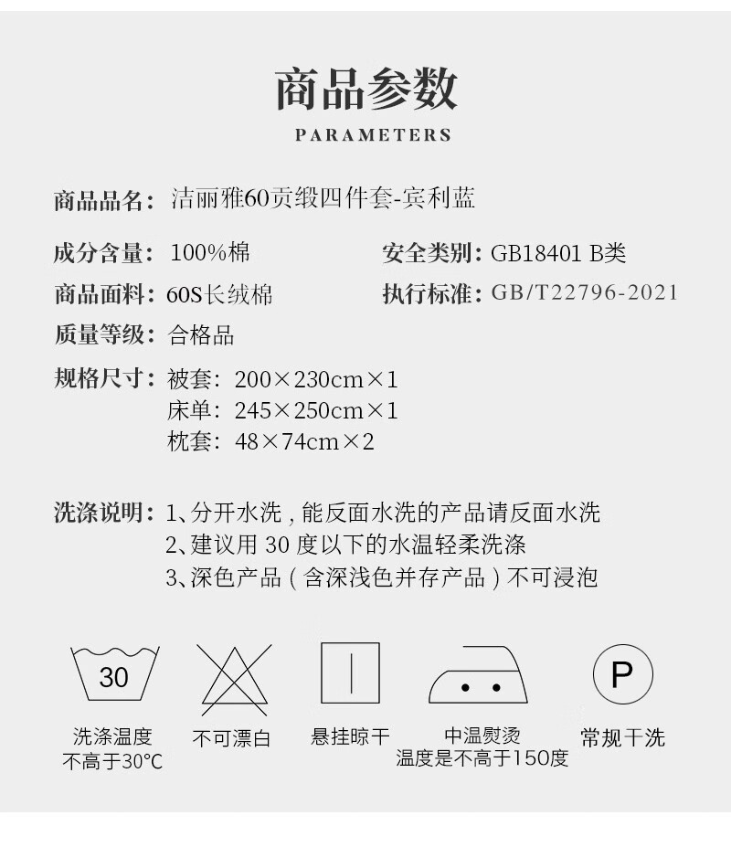 洁丽雅/GRACE JLYGD010被子/被单 洁丽雅60贡缎四件套-宾利蓝