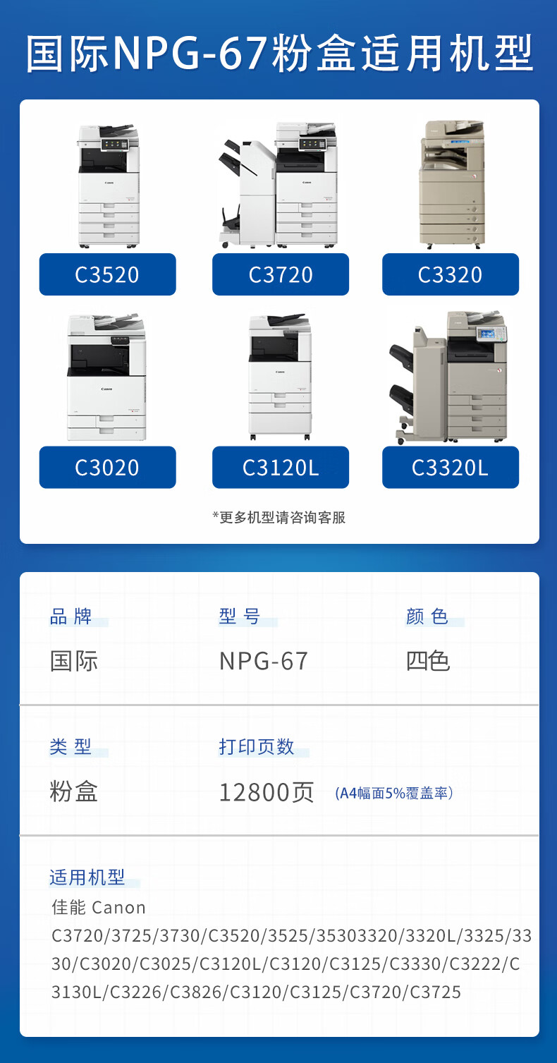 国际 NPG-67 粉盒 适佳能打印机iRC3222L/3130L/3226墨盒粉盒复合机C3125硒鼓NPG-67标准版四色套装黑青红黄含载体