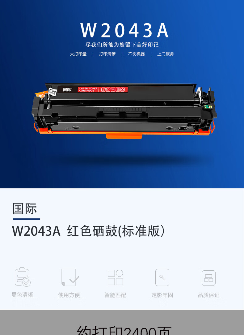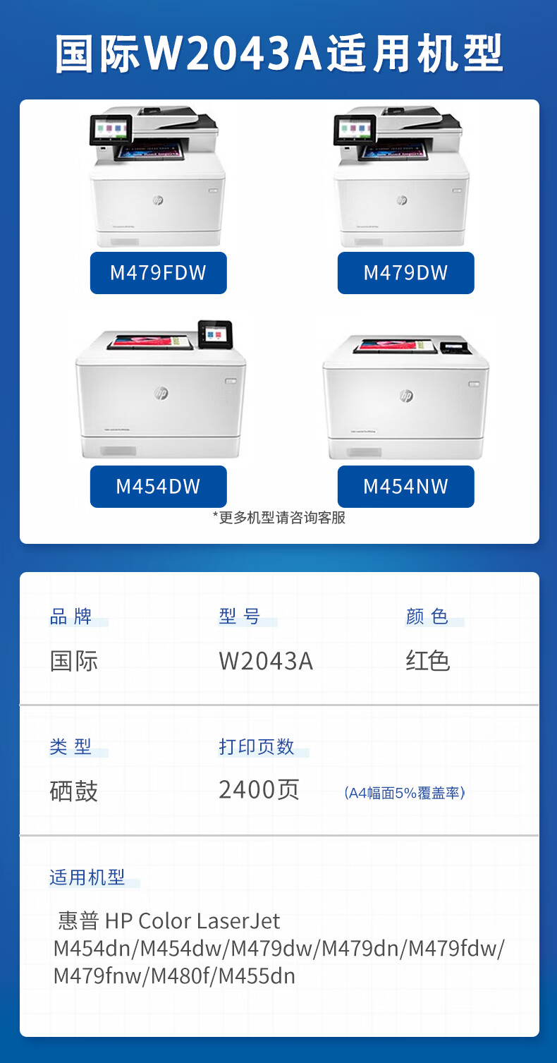 国际 W2043A 硒鼓 易加粉硒鼓 红色适用惠普硒鼓479fdw惠普打印机479dwW2040A墨盒m454dw M480f W2043A易加粉 (带芯片)