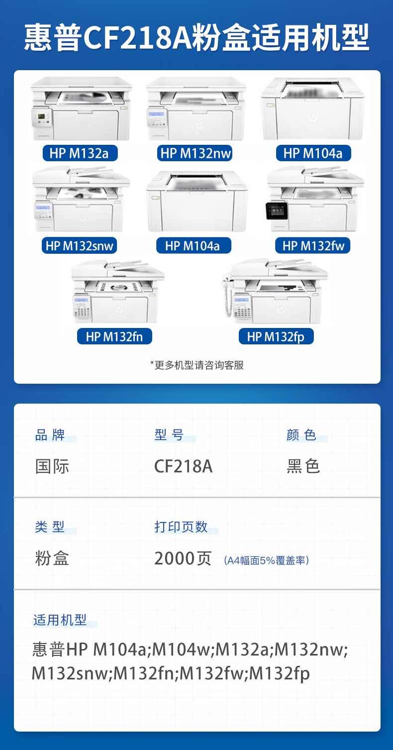 国际 CF218A 粉盒 适用惠普m132nw墨盒m132nw硒鼓m104w打印机m132a粉盒M132SNW 【带芯片】2000页-标准版粉盒