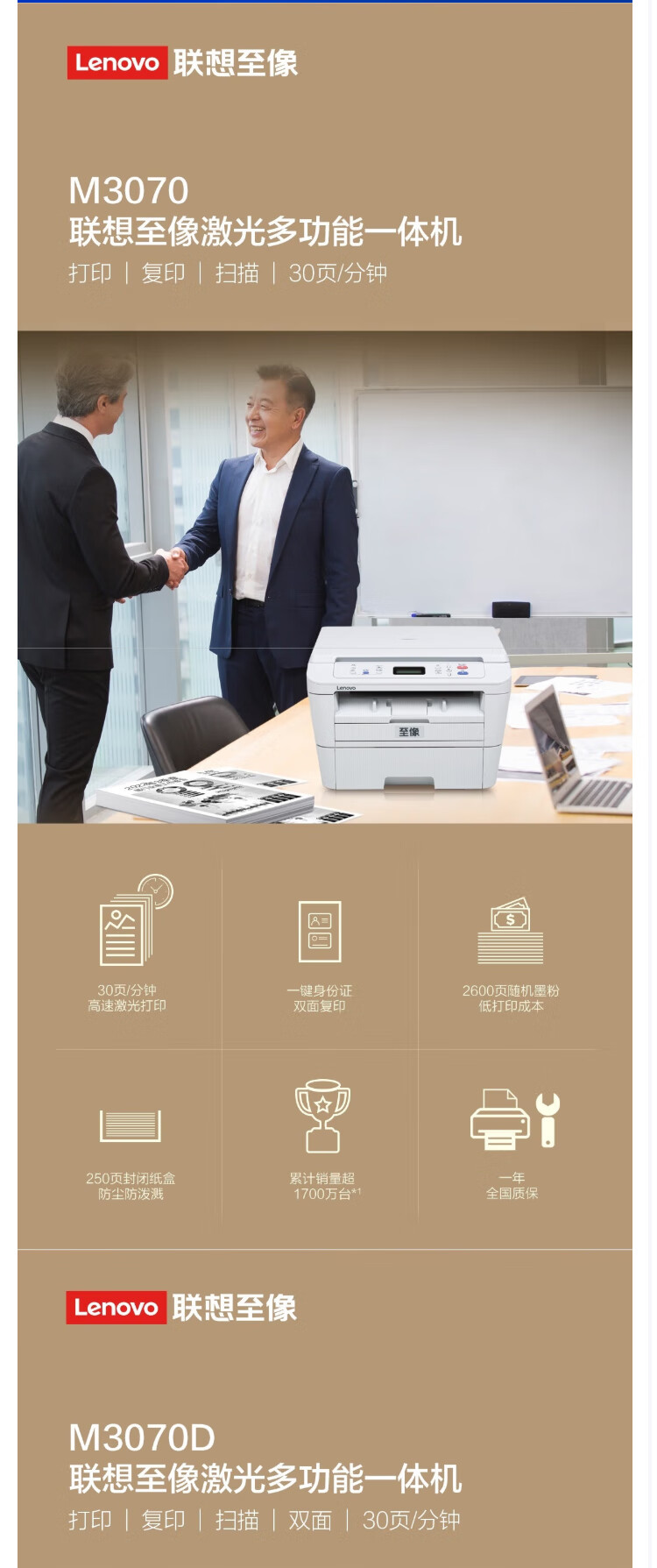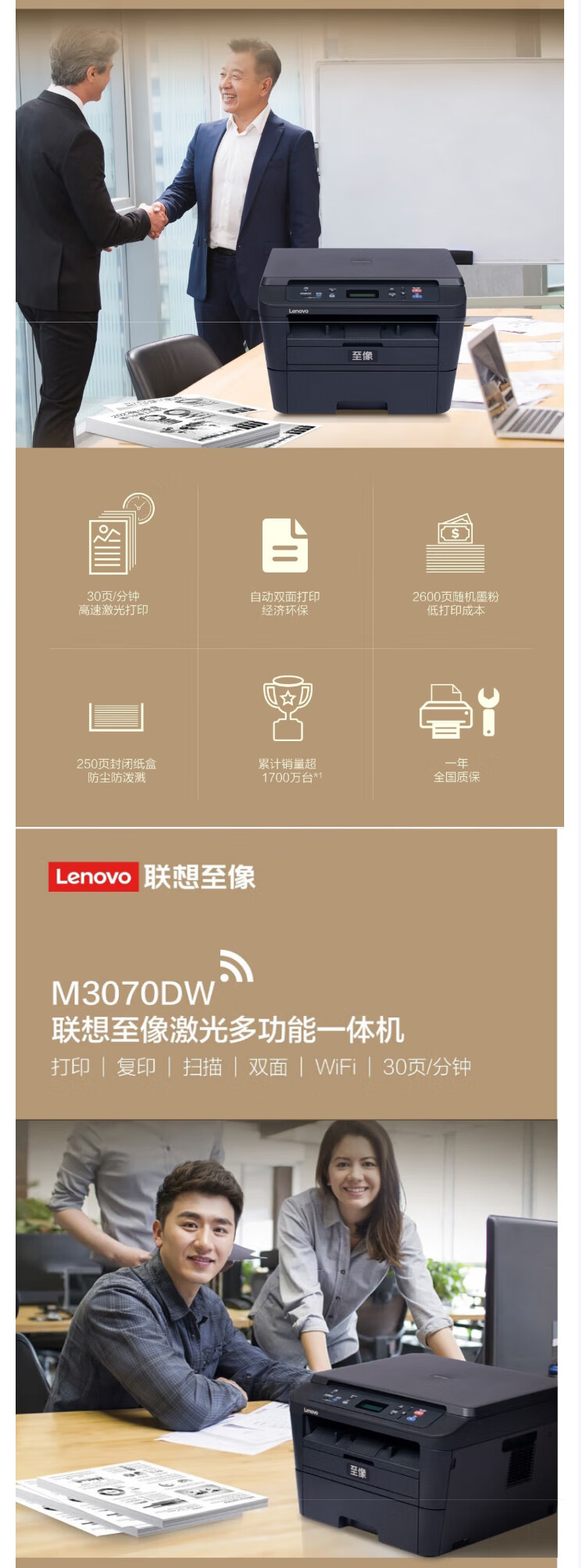 联想/LENOVO M3070D 多功能一体机 打印复印扫描无线WIFI
