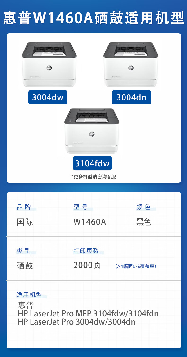 国际 w1460A 硒鼓 适用惠普3104fdw硒鼓3104fdn打印机3004fdw 3004dn打印机 【带芯片2000页】W1460/146A标准版硒鼓