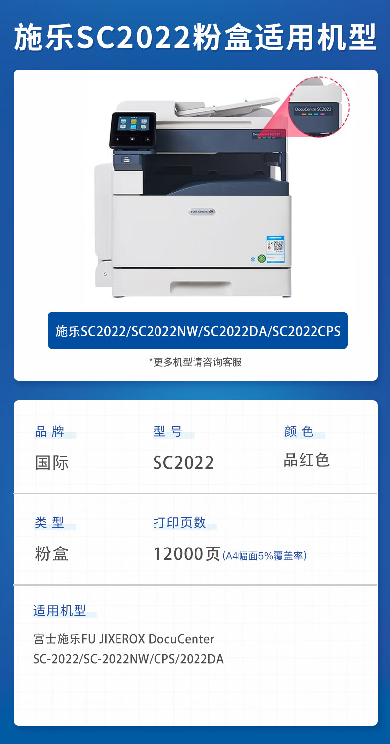 国际 SC2022M 粉盒 适用富士施乐DocuCentre SC2022CPS/DA粉盒SC2022/NW复印机墨粉盒 SC2022 红色墨粉盒大容量 12000页 N