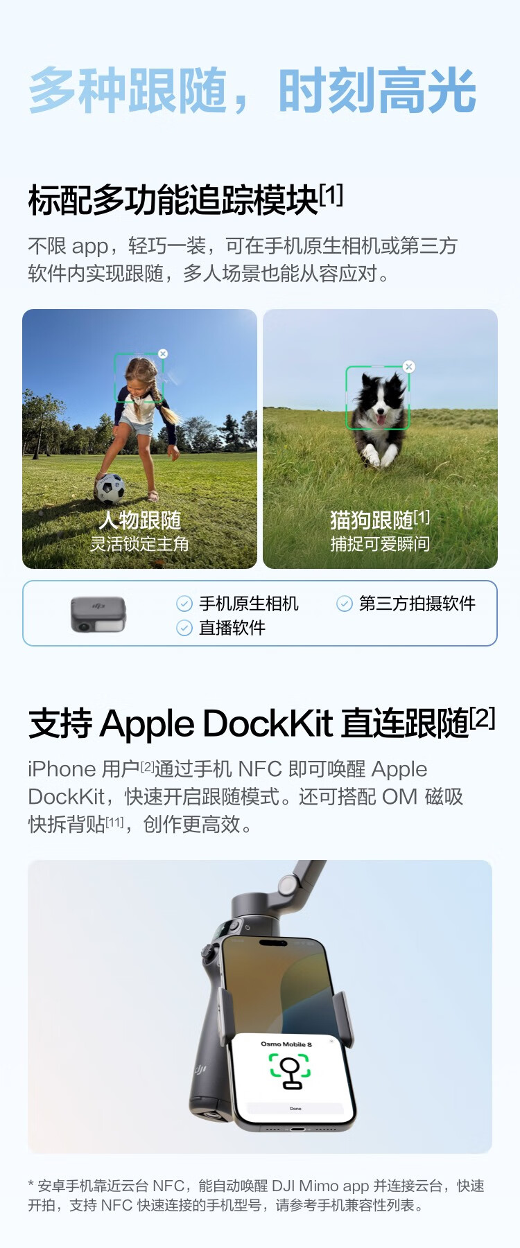 大疆/DJI Osmo Mobile 8三脚架 手机稳定器手持云台OM8 360度跟拍防抖自拍杆折叠便携直播