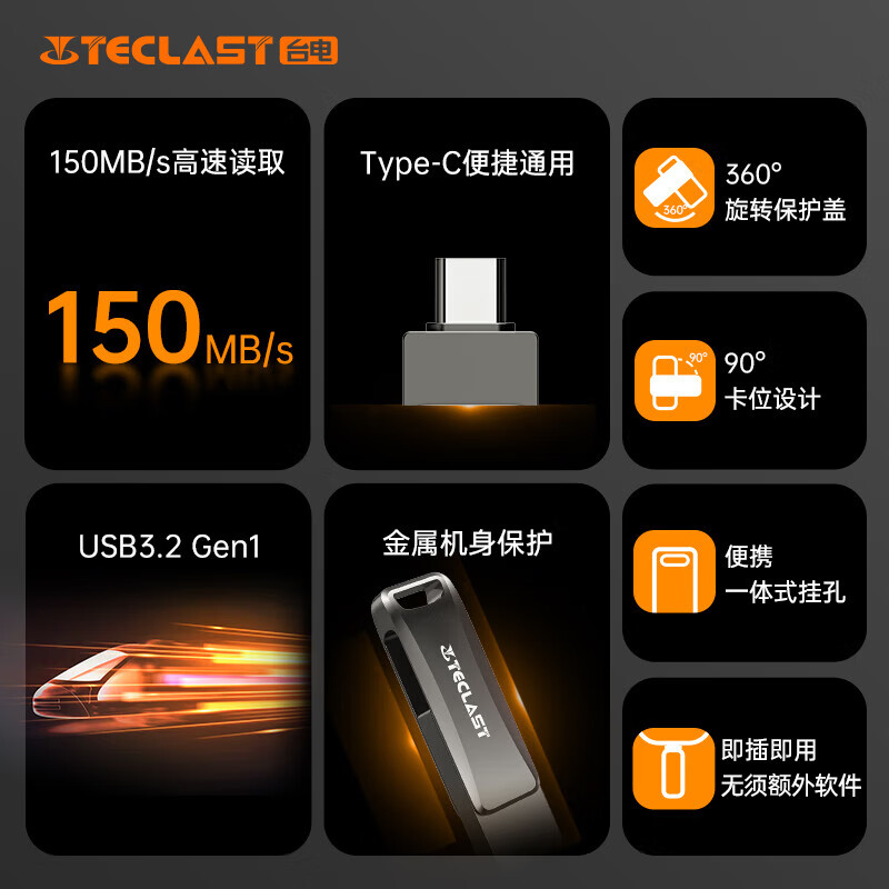 台电/Teclast 128GB XWC U盘/存储卡 USB3.2高速U盘手机电脑通用大容