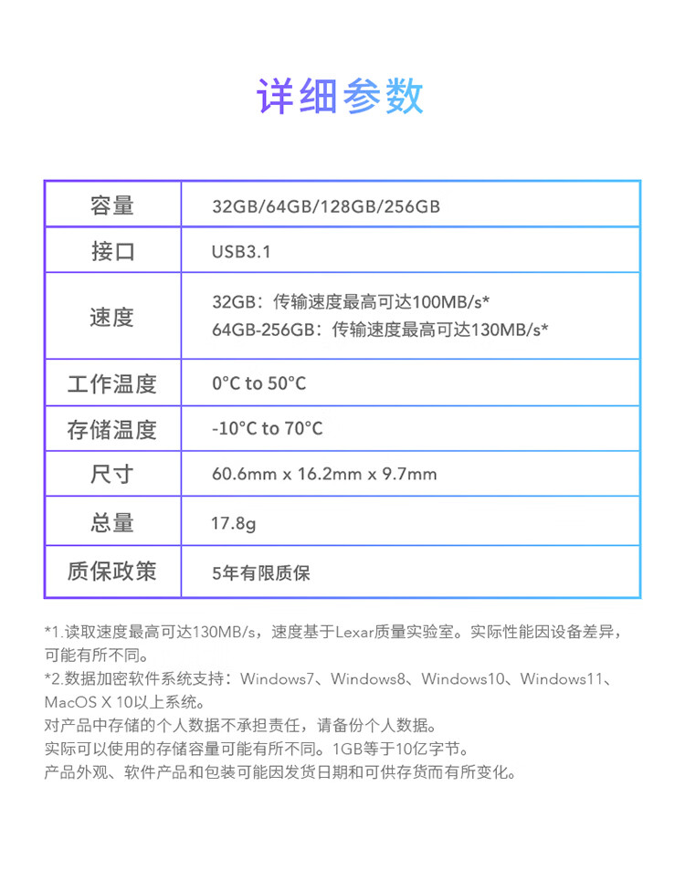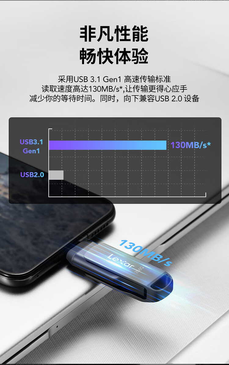 雷克沙/Lexar D40T 128G 3.0 U盘/存储卡 双口高速|USB 3.2 128GB