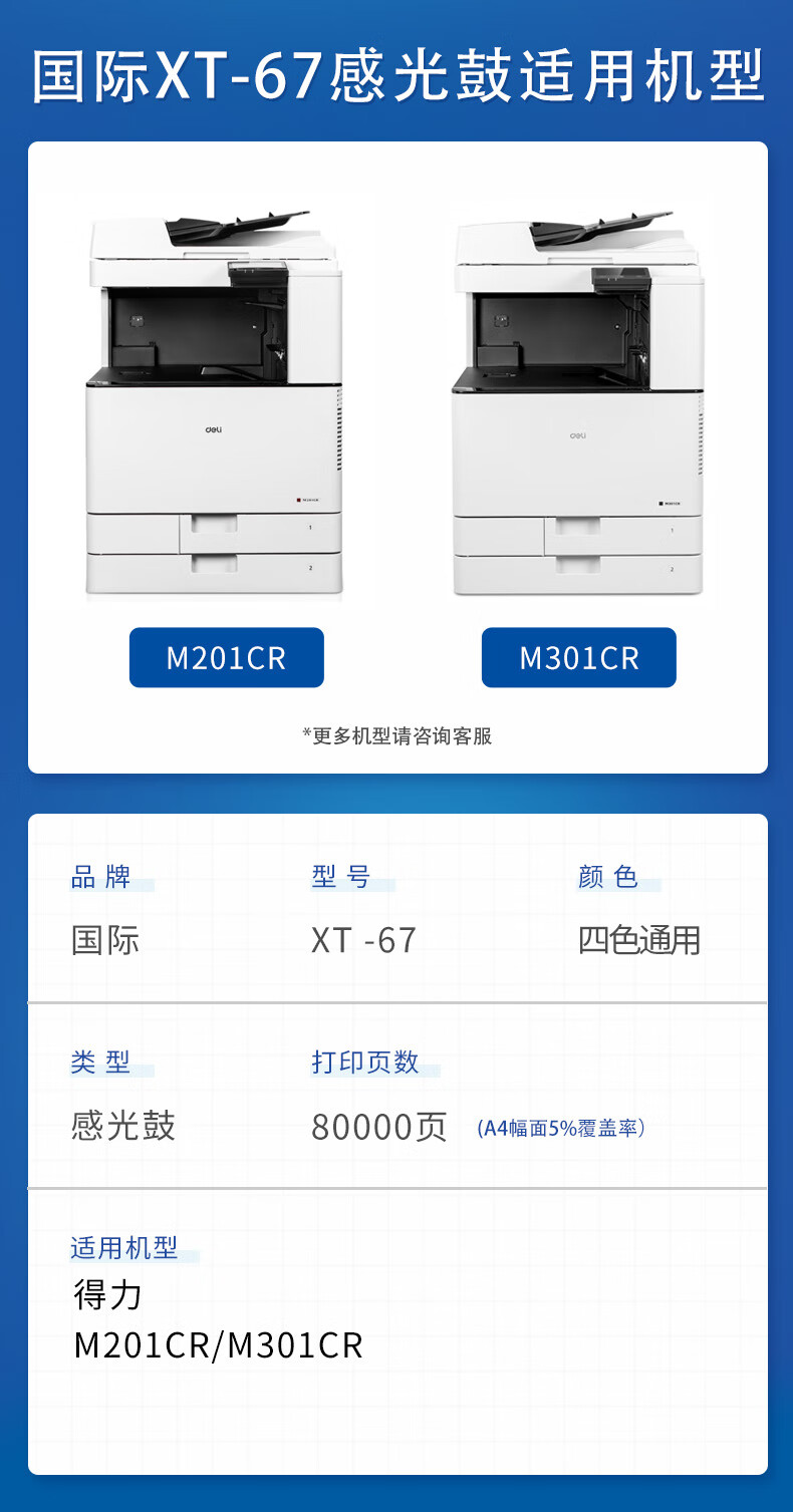 国际 XT67 硒鼓 用得力复印机耗材M201CR硒鼓墨粉盒XT67Ke粉盒XT67碳粉感光鼓M301CR打印机晒鼓 感光鼓 1支装-四色通用