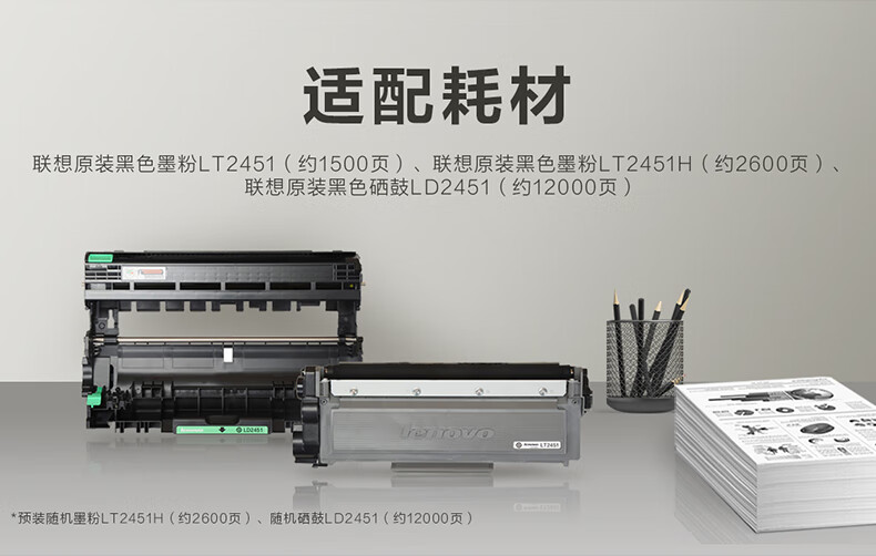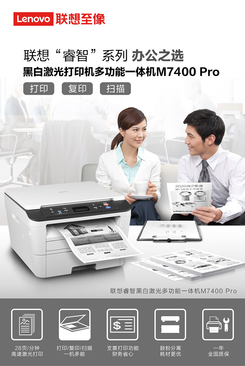 联想/LENOVO M7400 Pro 多功能一体机 a4黑白激光打印机办公打印复印扫描多功能一体机三合一
