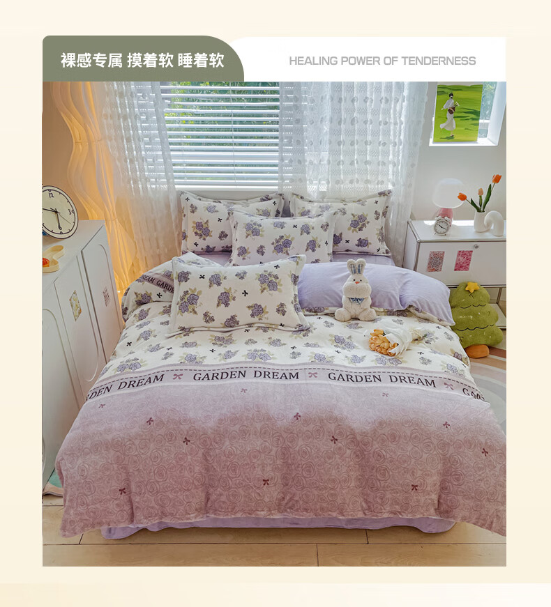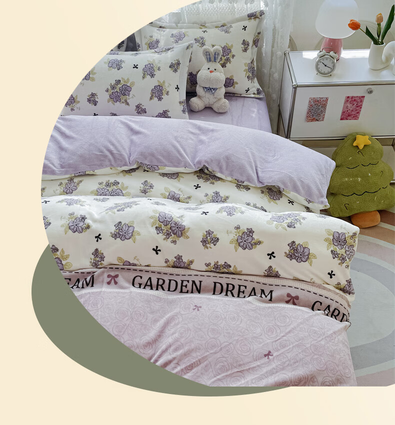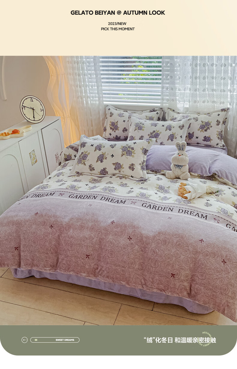 红豆/Hodo HD-T250307被子/被单 红豆牛奶绒四件套-芬芳物语 被套200*230cm*1床单240*250cm*1枕套48*74cm*2