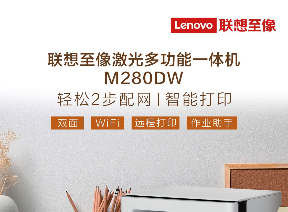 联想/LENOVO M280DW 多功能一体机 黑白一体机 家用办公双面打印 作业打印 蓝牙wifi连接 M280DW一体机(手机打印+双面+作业助手)