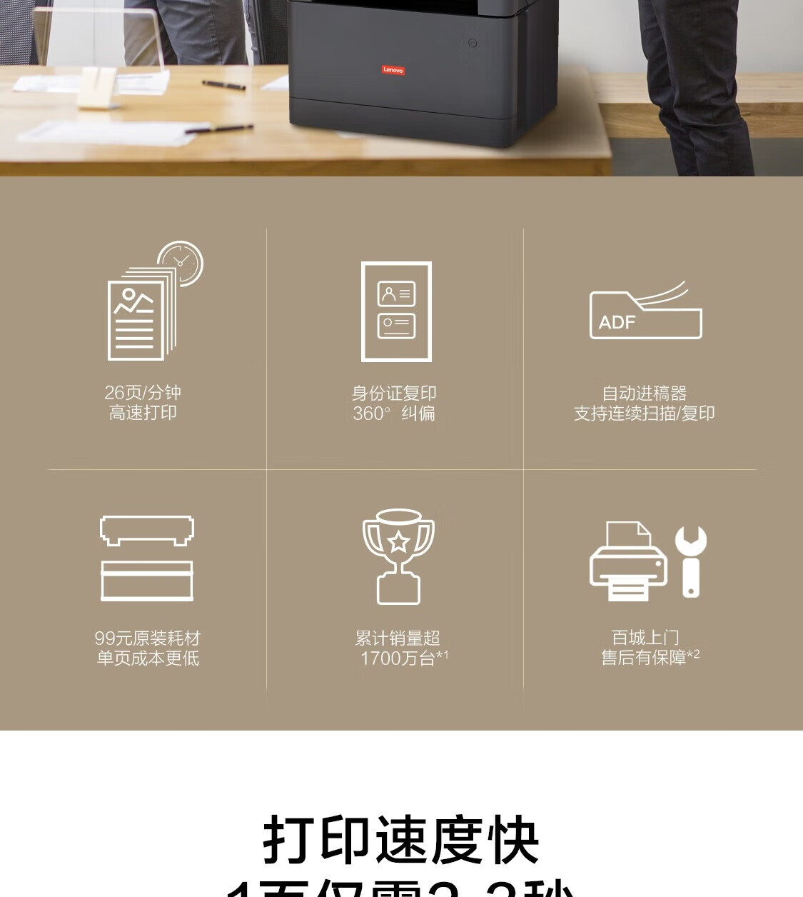 联想/LENOVO M7360DNA 多功能一体机 自动双面输稿器有线网络