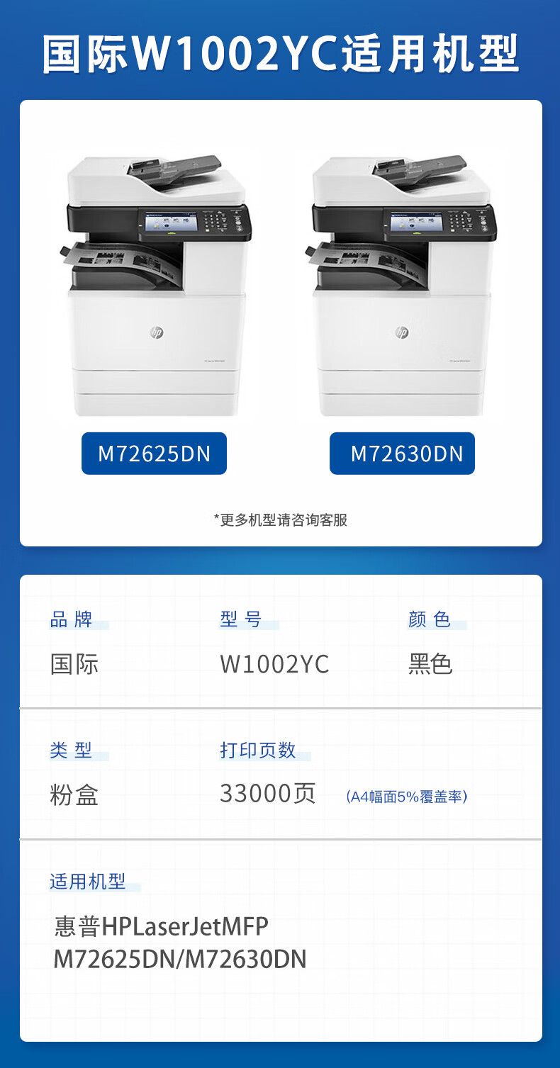 国际 W1002YC 粉盒 用惠普HP LaserJet MFP M72625dn M72630dn硒鼓粉盒 【33000页】W1002YC大容量 / 黑色粉盒