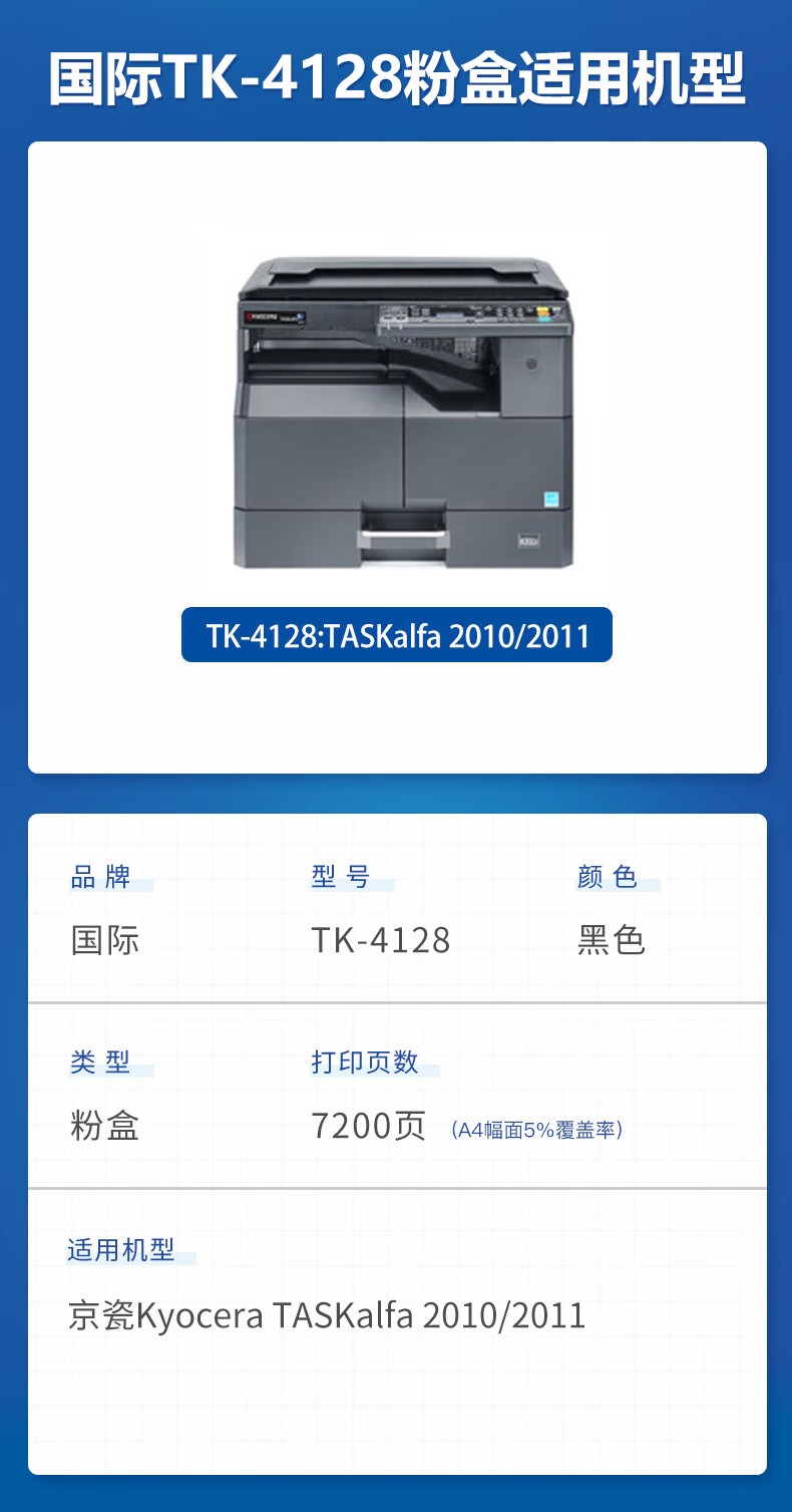 国际 TK-4128 粉盒 复合机墨粉碳粉盒 TK4128黑色 粉盒1支装 约7200页