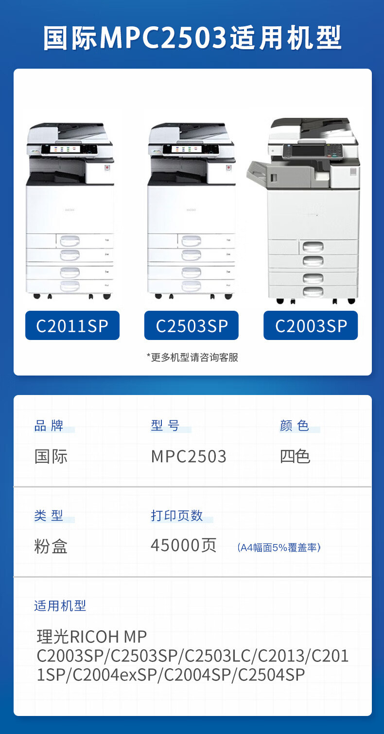 国际 MP C2503T 粉盒 适用理光MPC2011sp硒鼓粉盒MPC2503墨粉盒C2003打印机2504复印机墨盒MPC2503C四色套装大容量约45000页