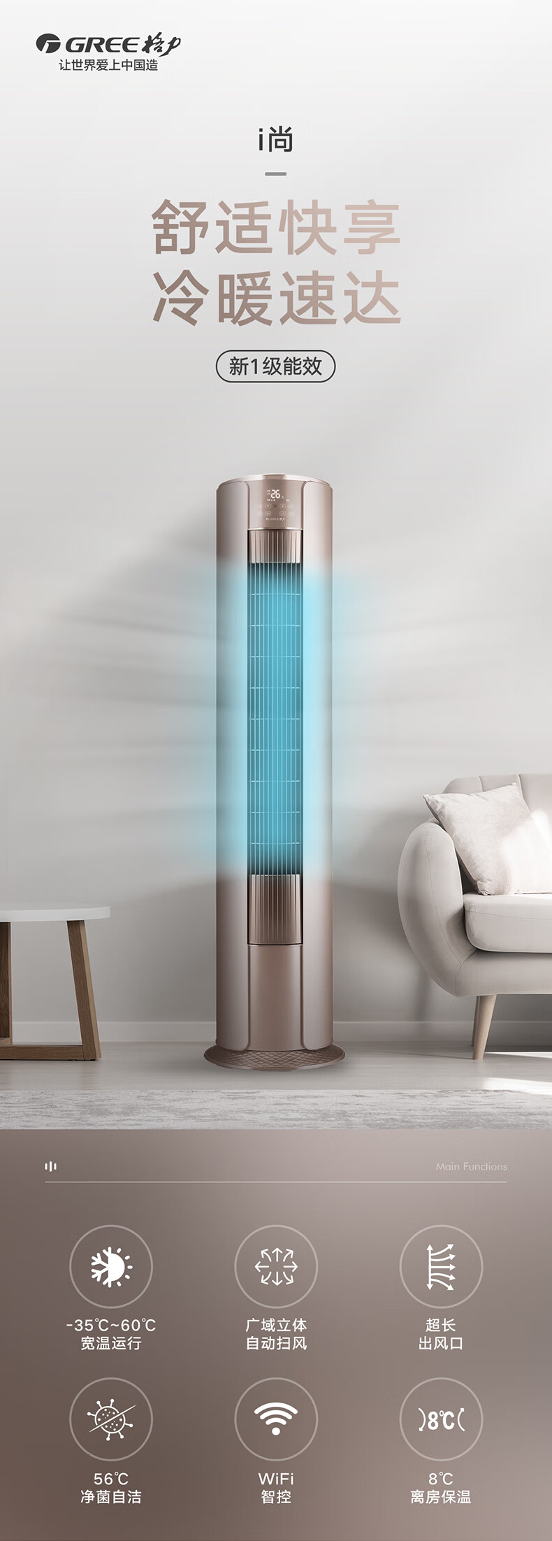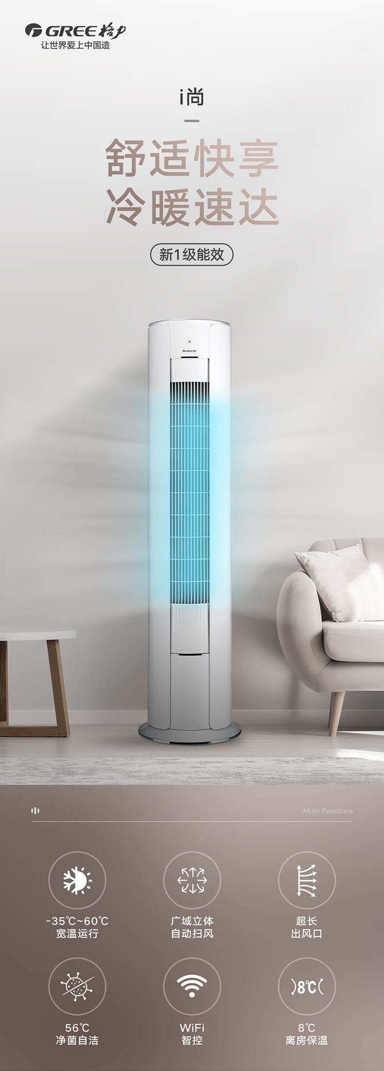 格力/GREE KFR-50LW/(50555)FNhAd-B1柜式空调 变频/1级/2P/22-35㎡/白色-35㎡/白色