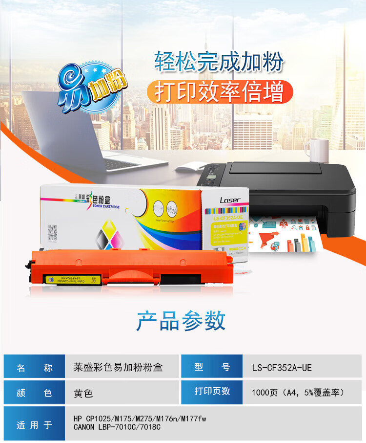 莱盛 LS-CF352A-UE 粉盒 标容通用易加粉 黄色 全新 有芯片 1K 25支/箱