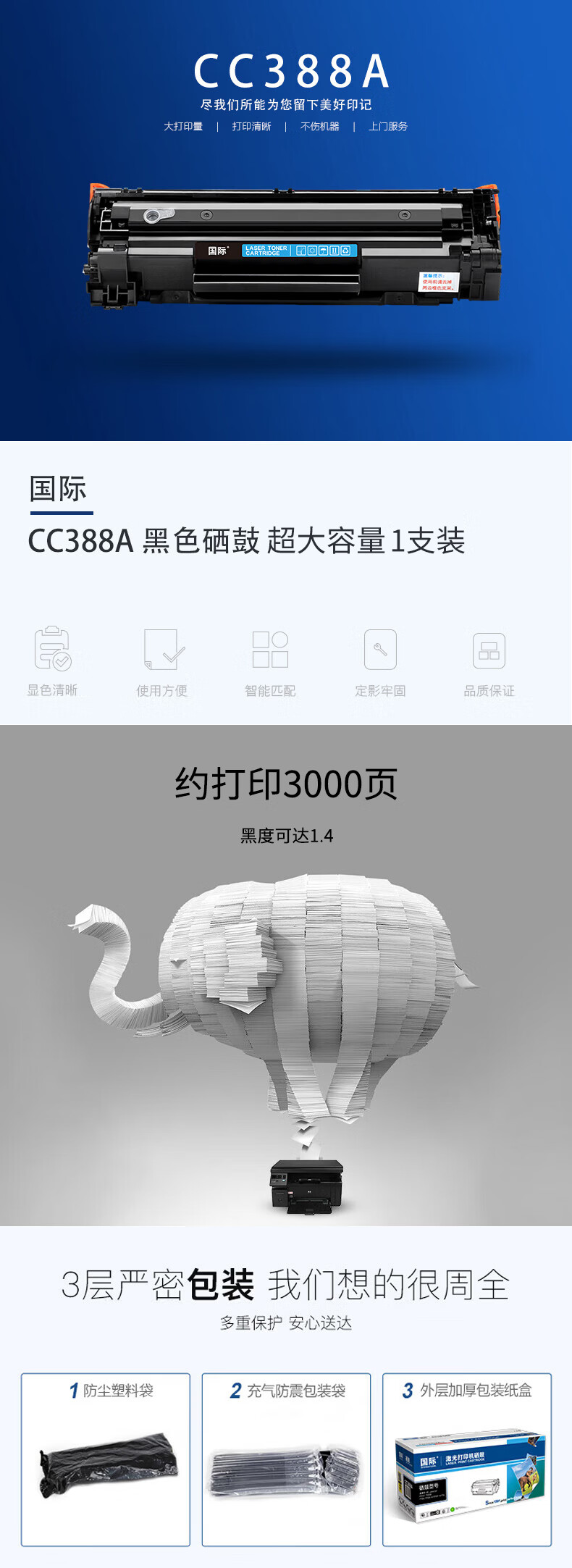 国际 CC388A 硒鼓 超大容量易加粉适用惠普m1136 m126a P1108 P1106 m1213nf 88a硒鼓【3000页】 单支装/支
