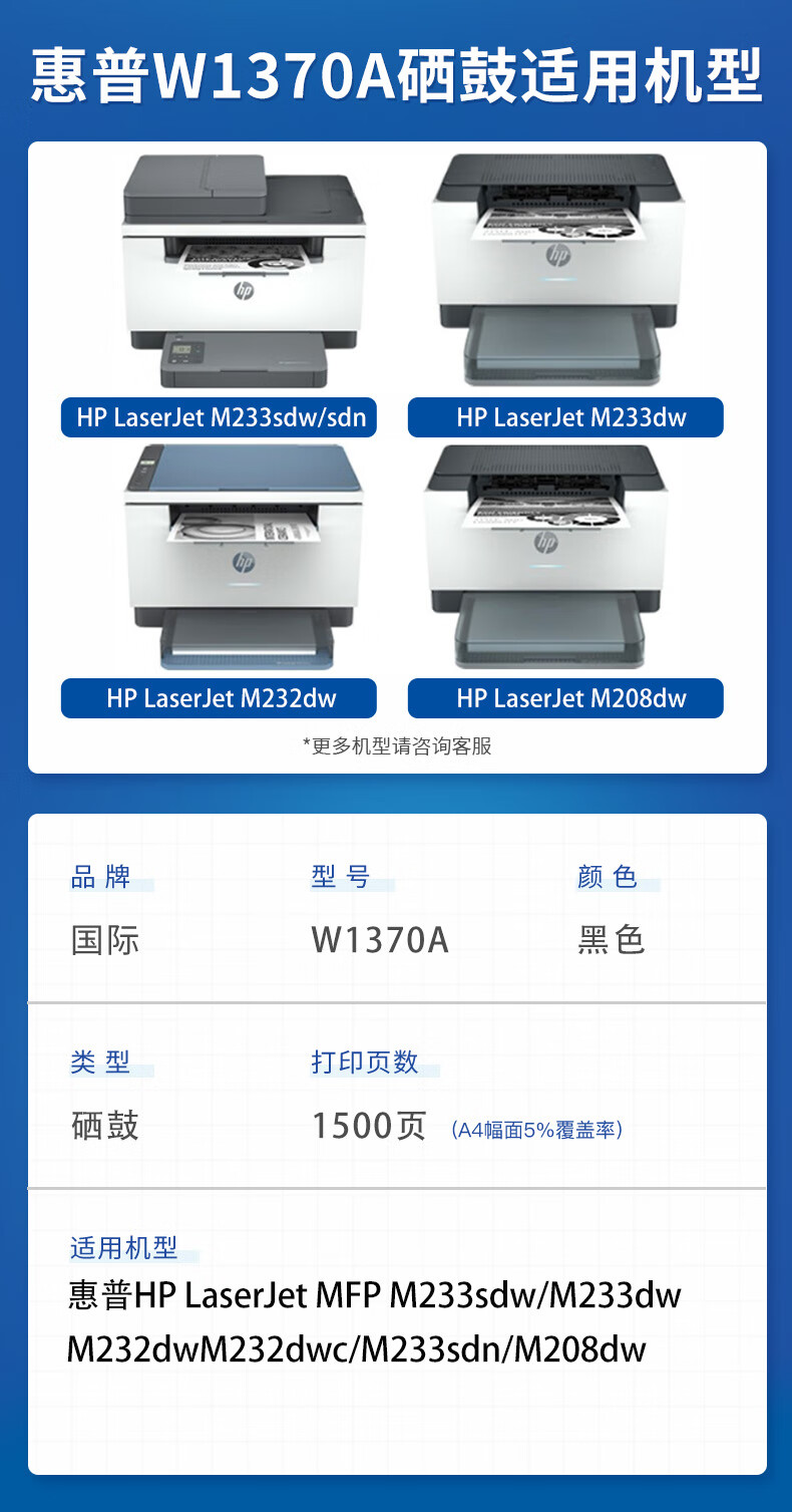 国际 W1370A 硒鼓 适用惠普m233dw粉盒m233sdw打印机m208dw 【带芯片】标准版1500页