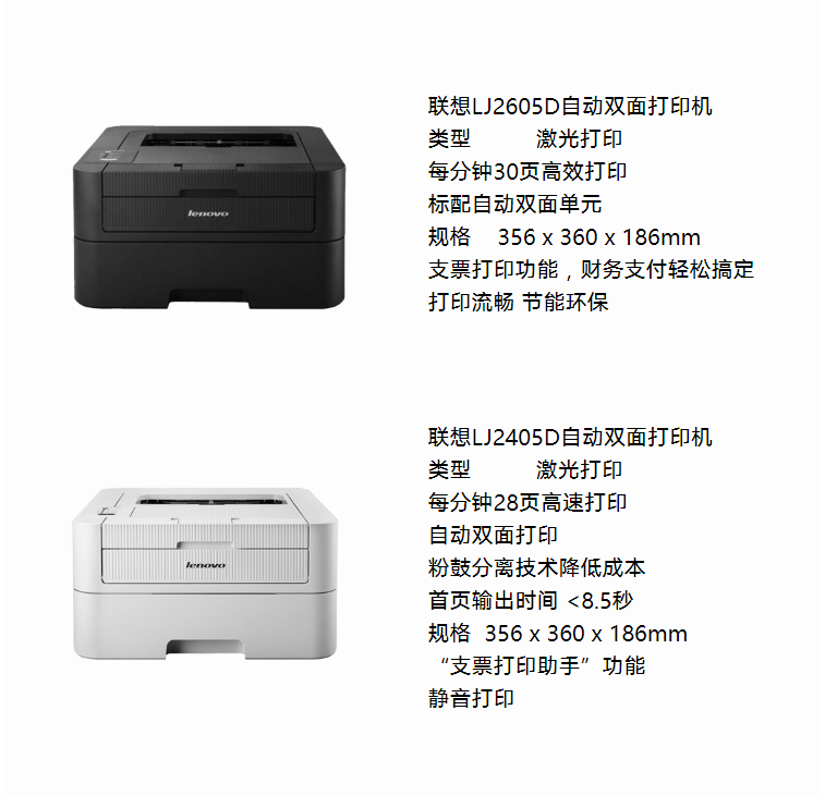 联想/LENOVO LJ2605D A4 黑白打印机 黑白激光自动双面打印机