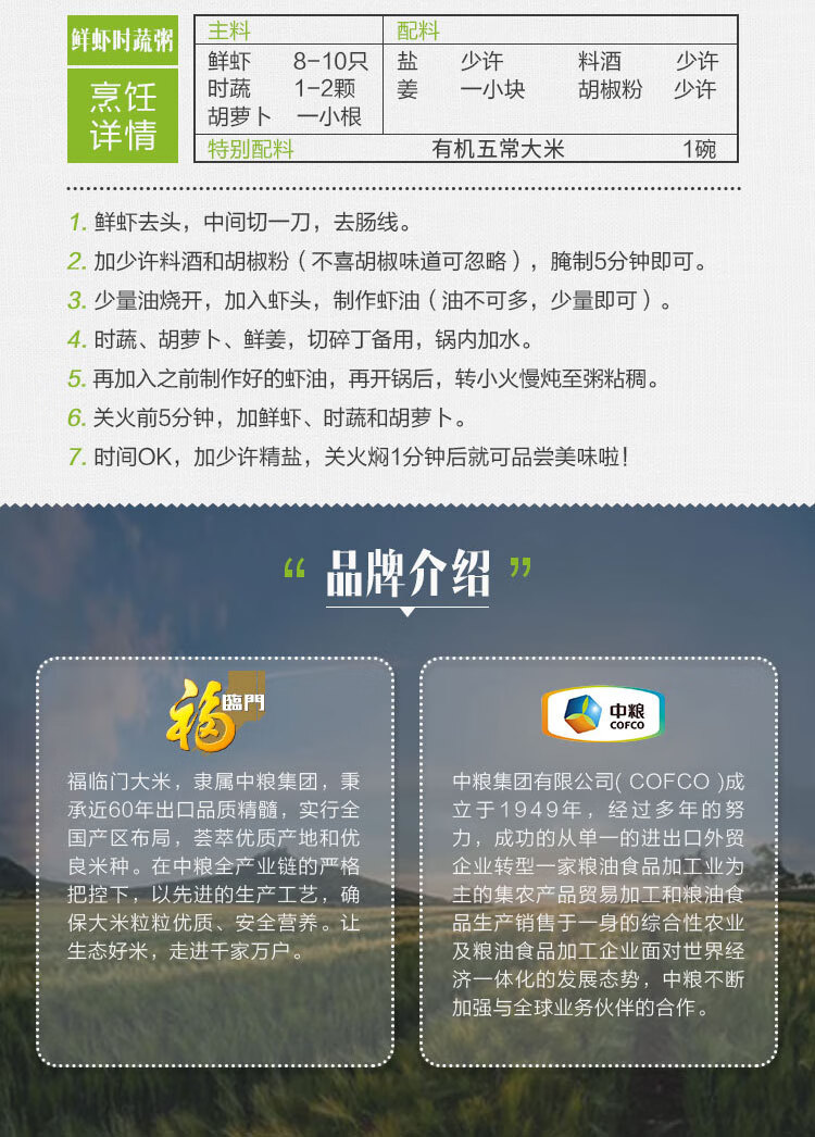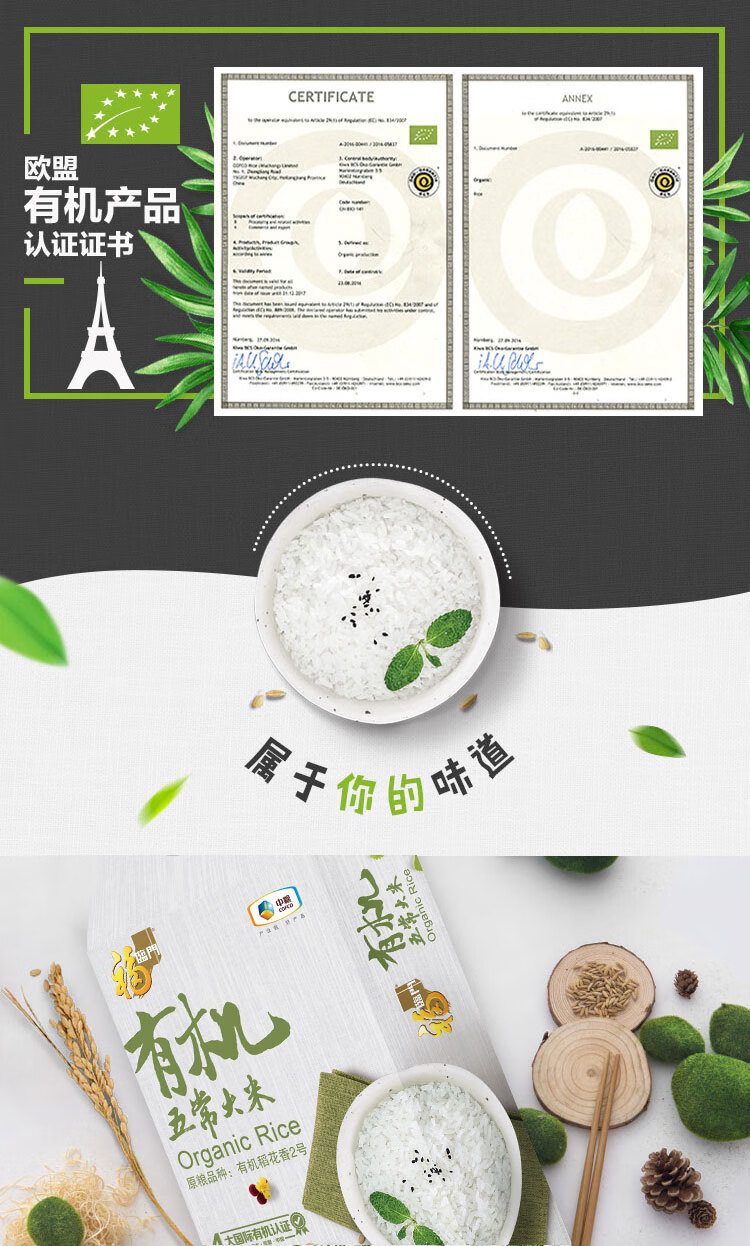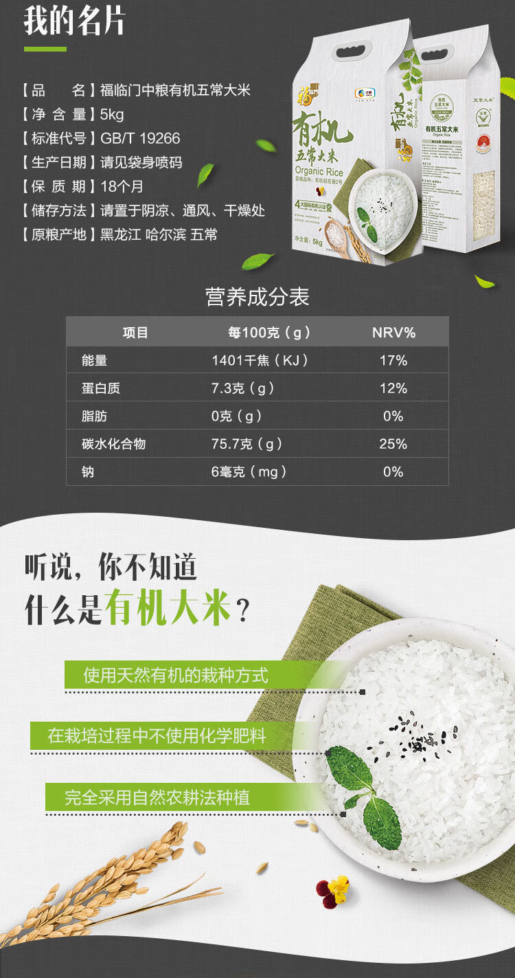 中粮 5kg大米 福临门有机五常稻花香5kg