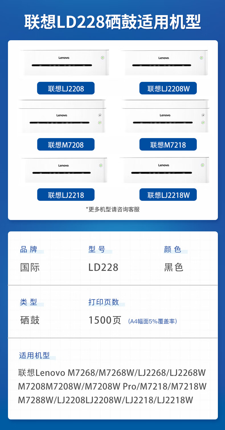 国际 LD228 硒鼓 适用联想打印机LT2268墨粉盒LJ2268W LD228 M7208M7218 LD228黑色易加粉硒鼓 1500页