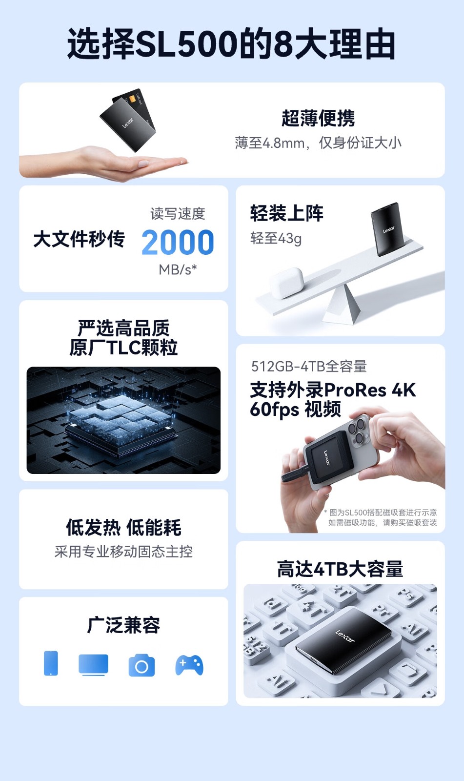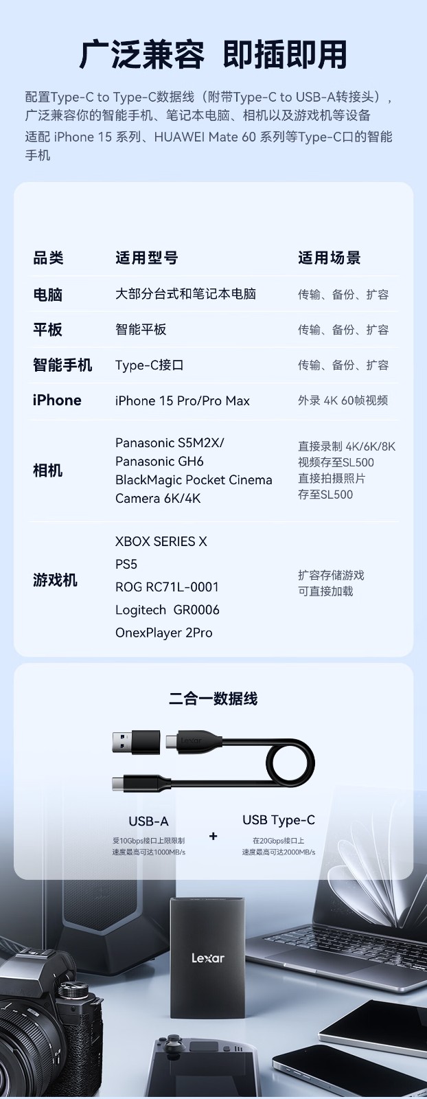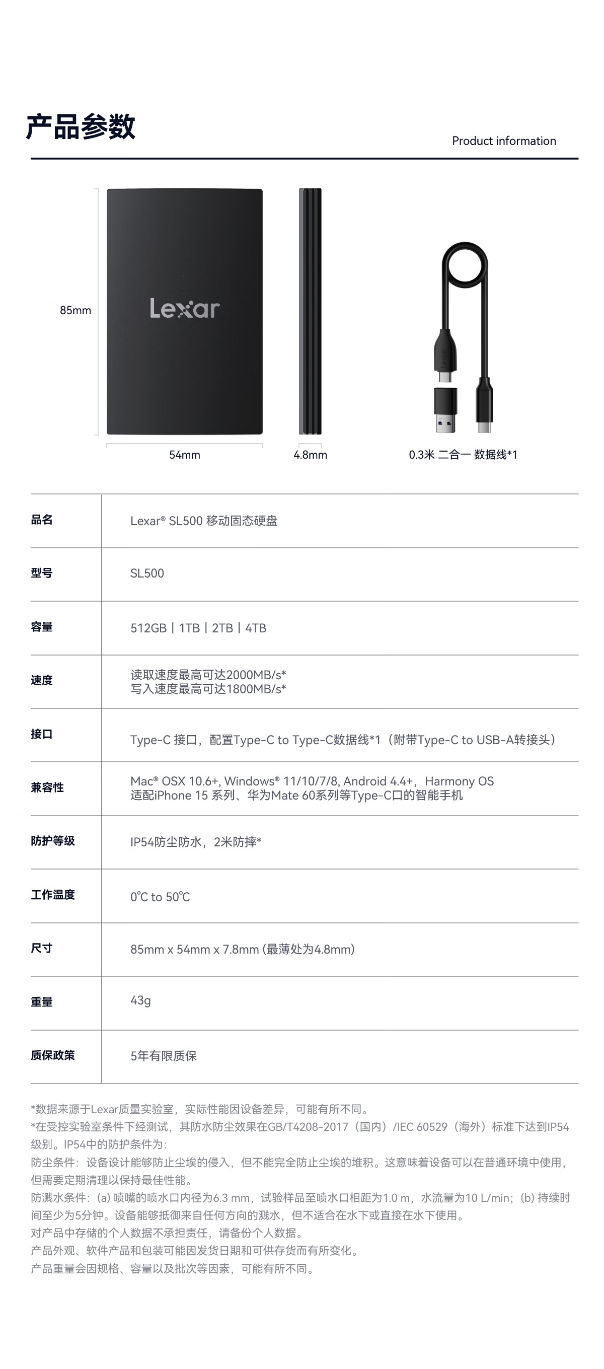 雷克沙/Lexar L500X 2T 移动硬盘 移动固态硬盘 usb3.2 Type-C