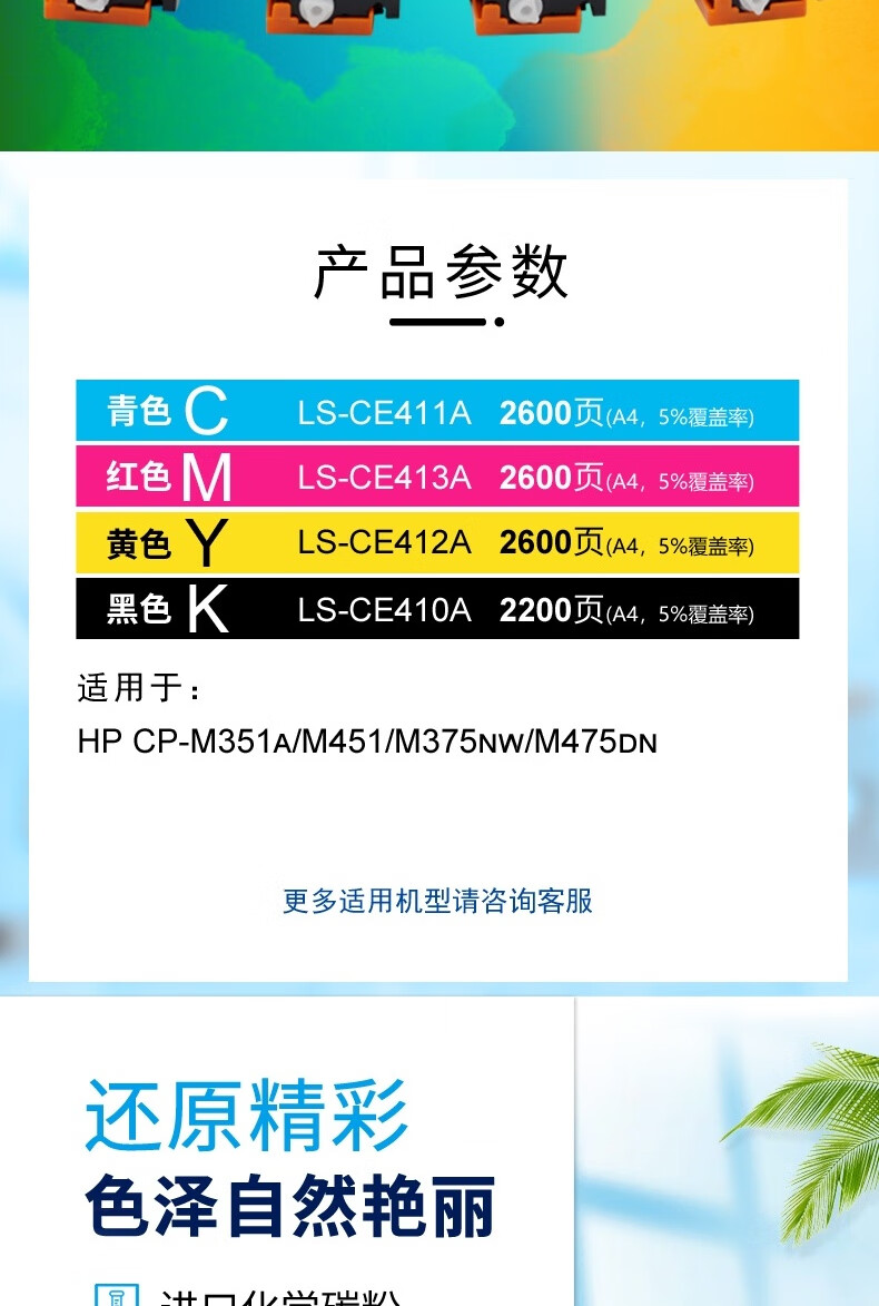 莱盛 LS-CE413A 粉盒 标容 品红色 全新 有芯片 2.6K 20支/箱