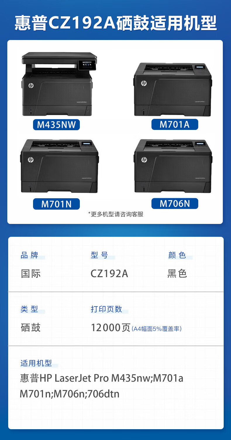 国际 CZ192A 硒鼓 适用惠普M435nw硒鼓HP 93A墨盒m701n/m701a墨粉盒M706N碳粉盒CZ192A CZ192A标准版 硒鼓单支装12000页