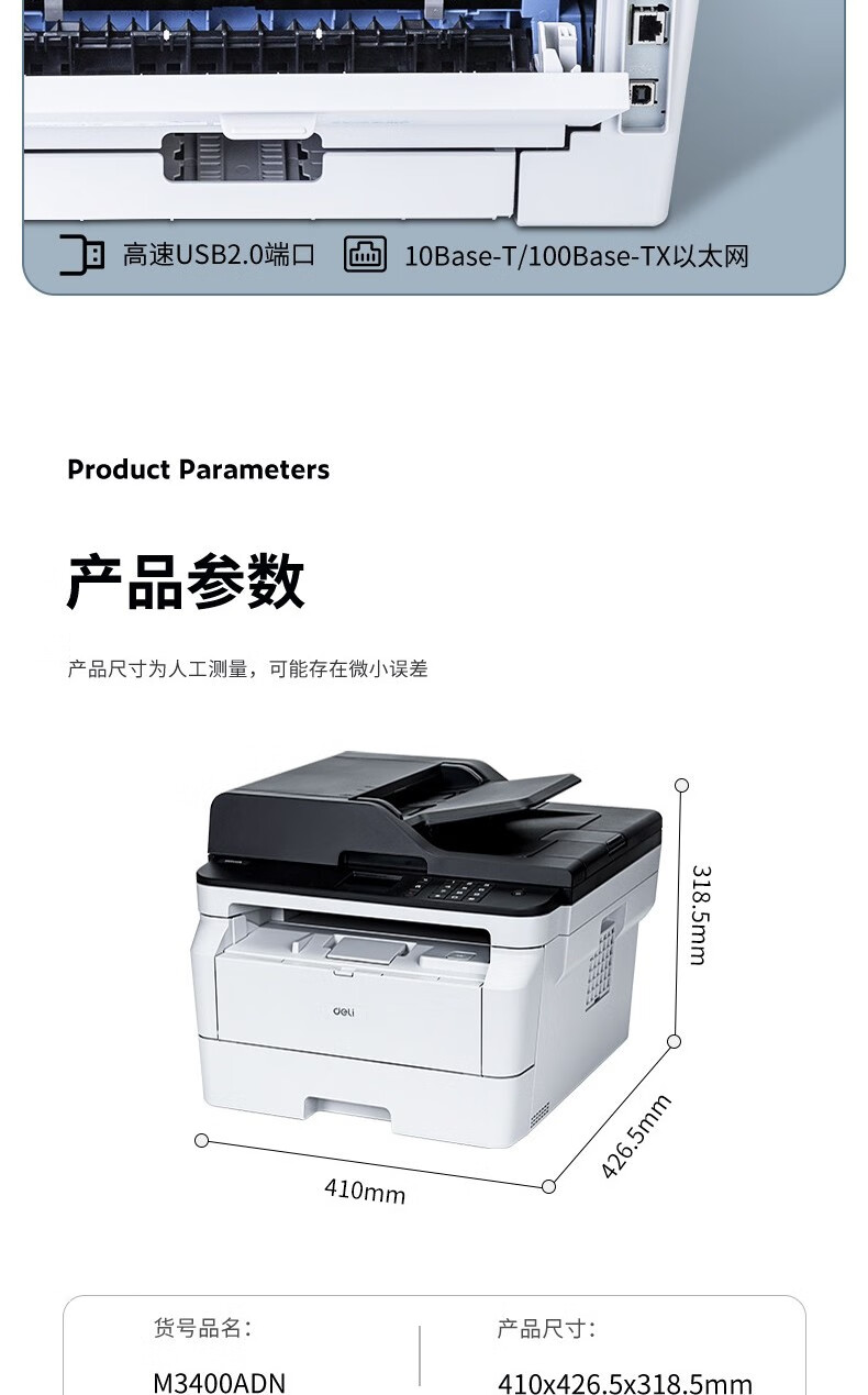 得力/deli M3400ADN多功能一体机 黑白激光多功能一体机(白色)(台)