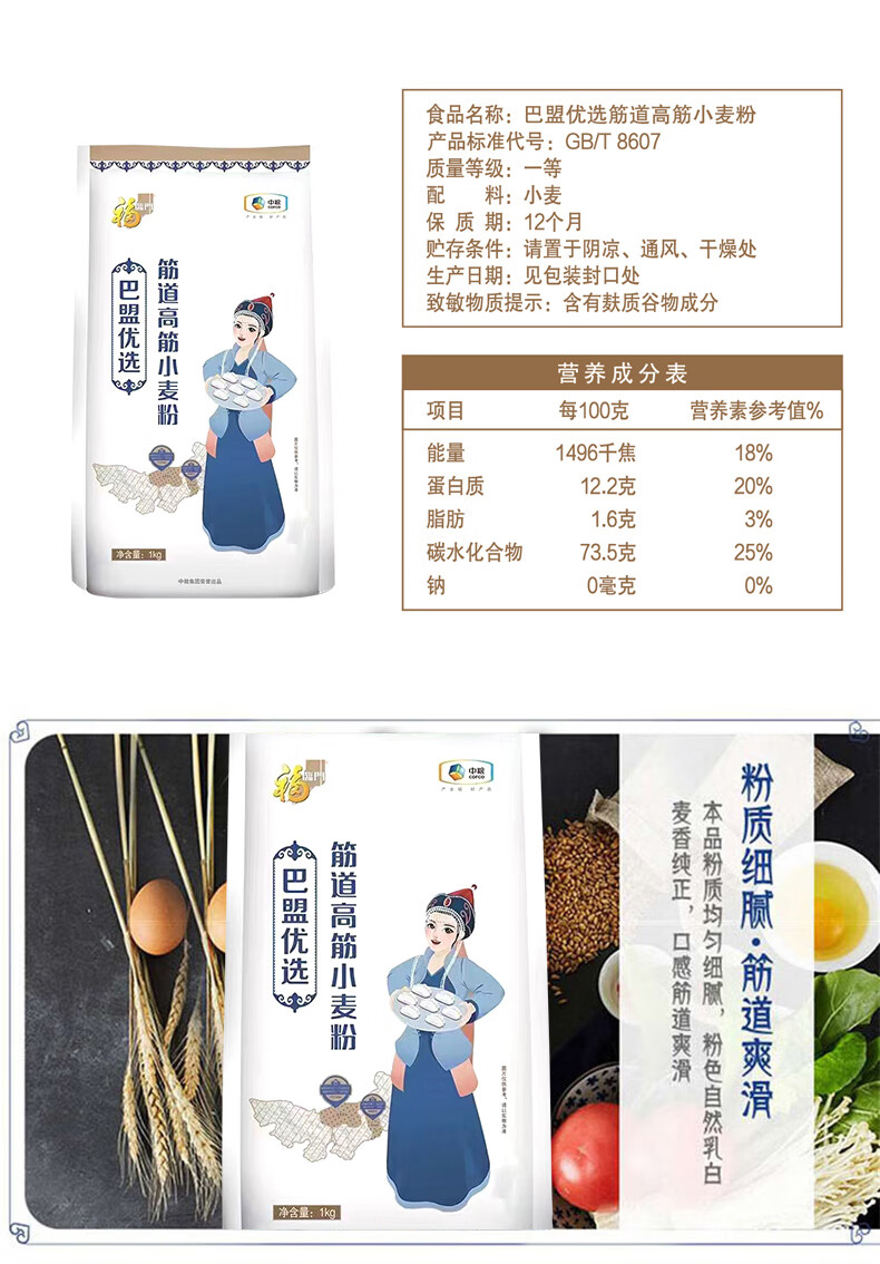 福临门 4kg小麦面粉 巴盟优选筋道高筋小麦粉礼盒4kg