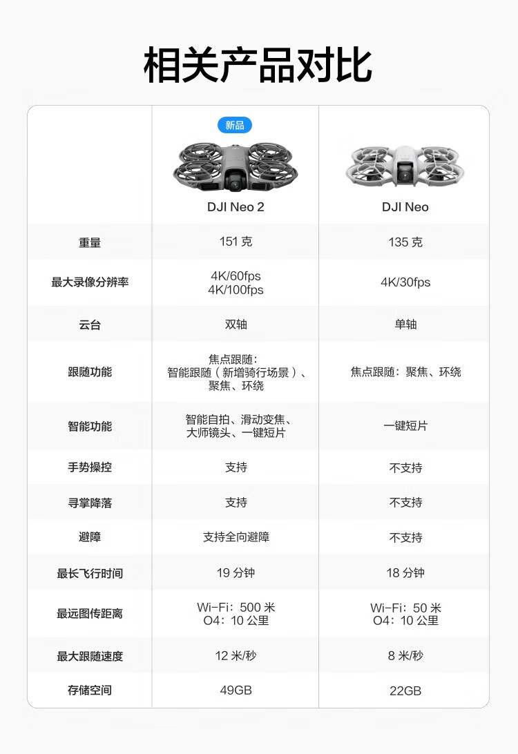 大疆/DJI Neo 2 无人机 智能跟拍4K入门航拍飞行相机 畅飞套装(仅飞行器)
