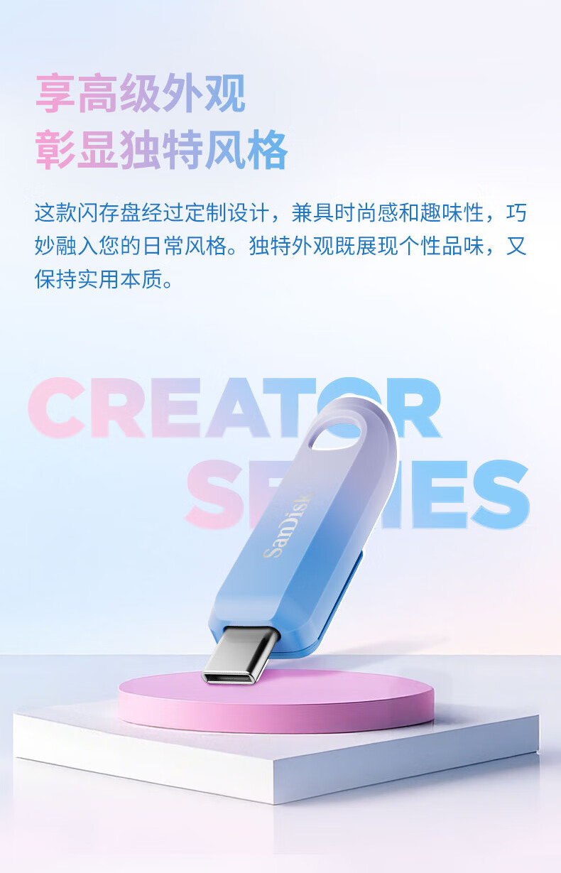 闪迪/SanDisk SDCZ75C-512G-Z35 U盘/存储卡 套装(转接头+优盘) 渐变蓝