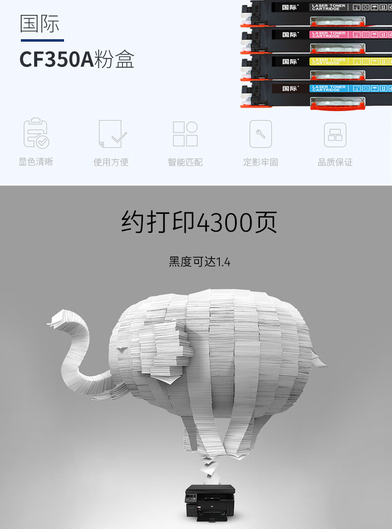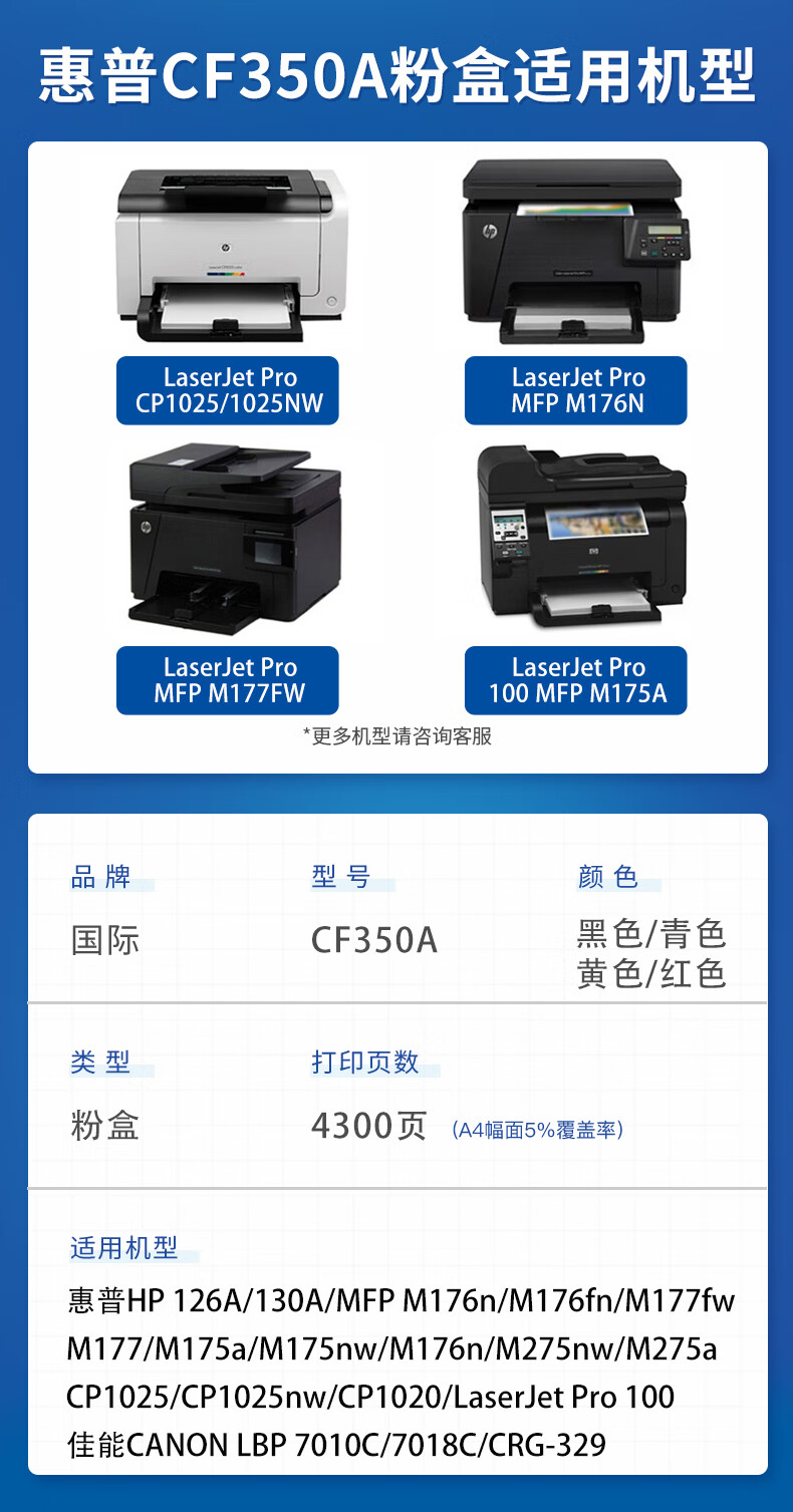 国际 CF350AT 粉盒 适用惠普cp1025硒鼓m175a墨盒m176n打印机m177fw粉盒m175nw 7010c CE310A/CF350A粉盒四色套装 4300页