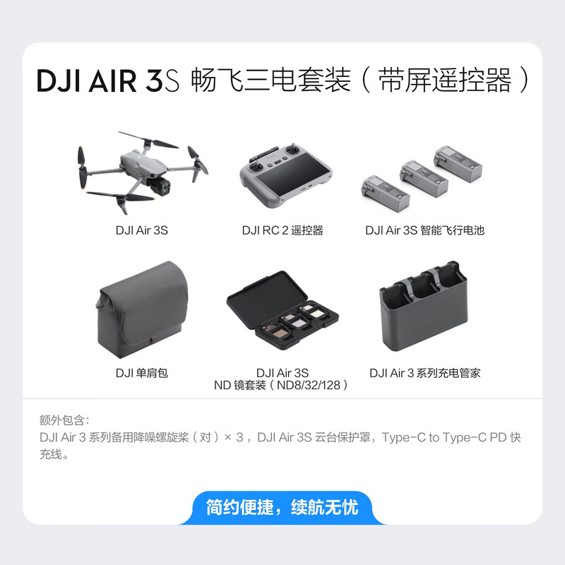 大疆/DJI Air 3S无人机 畅飞三电套装(带屏遥控器)