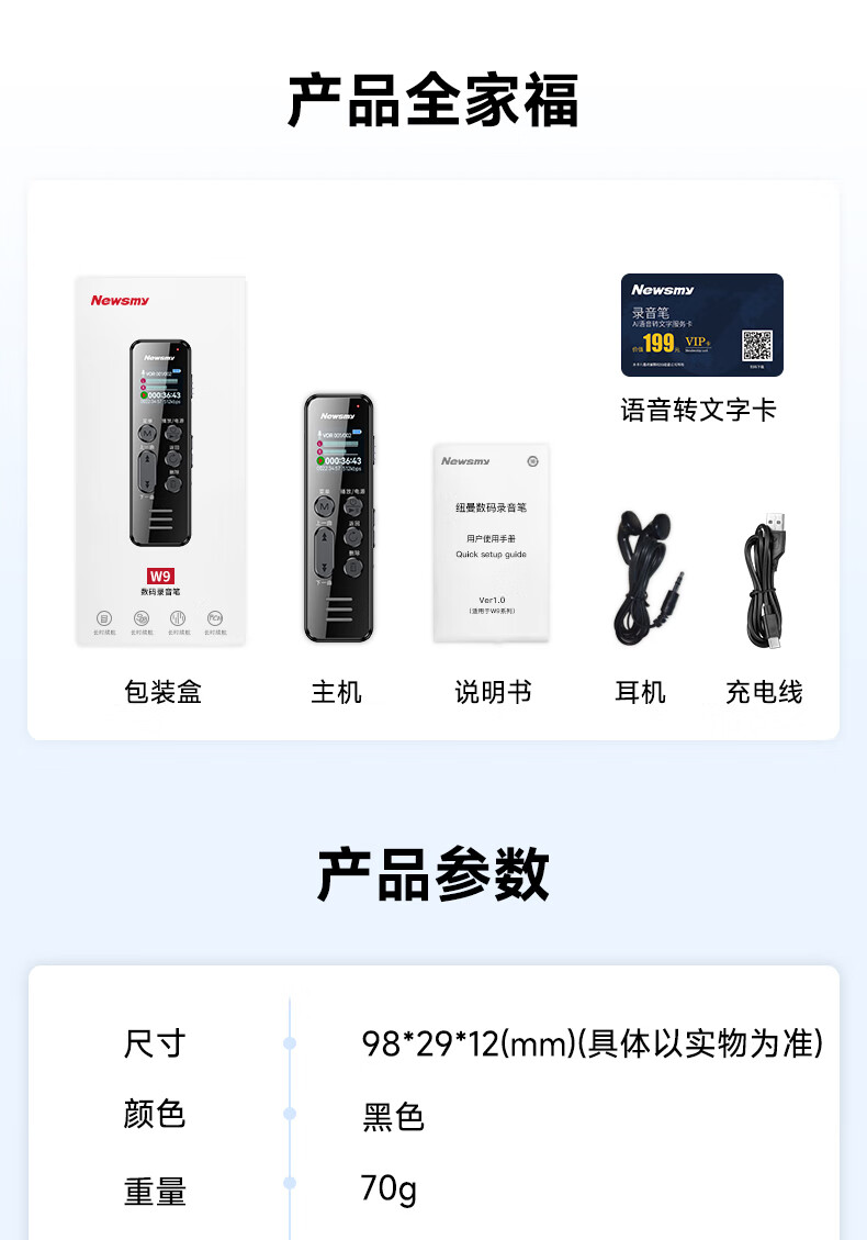 纽曼/Newsmy W9 32G 录音笔 大容量锂电池长时待机