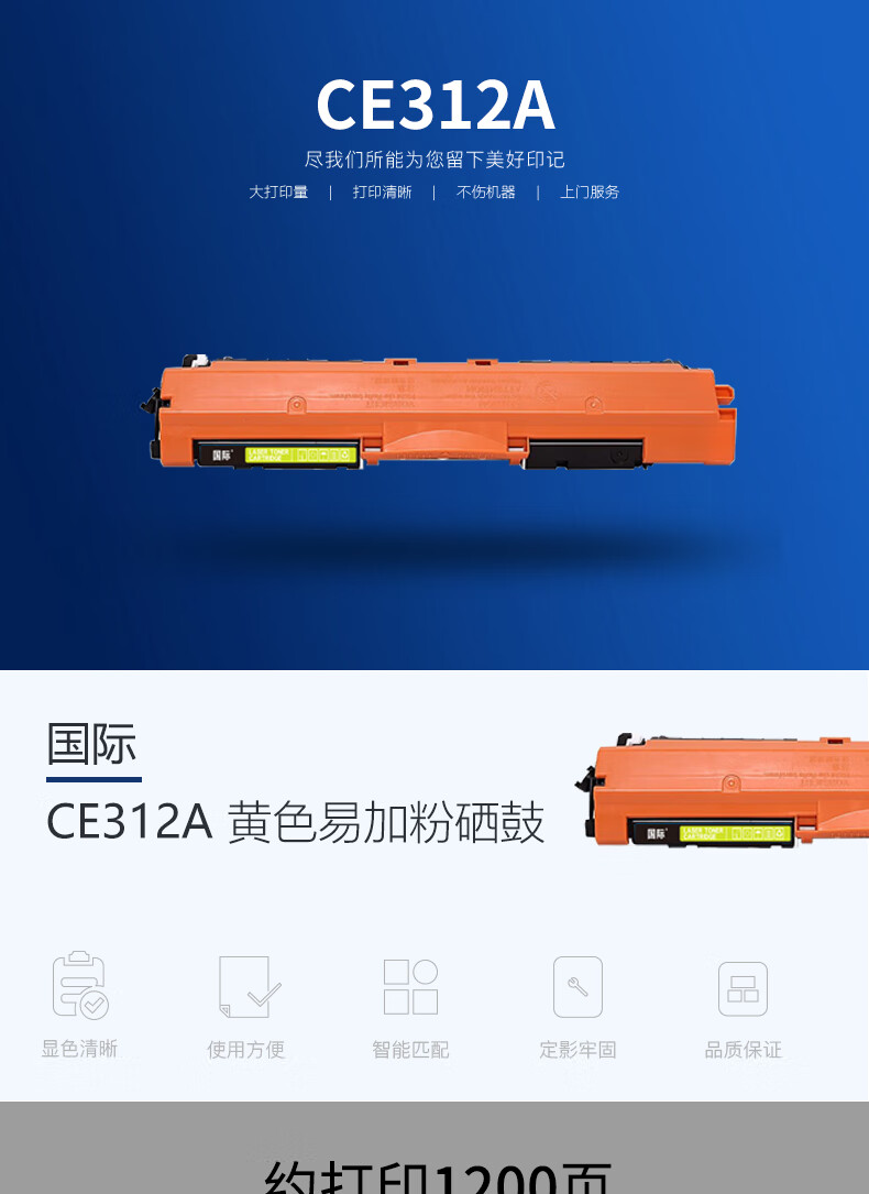 国际 CE312A 硒鼓 黄色 适用惠普cp1025m176n粉盒HP126A M177fw M175nw M175a打印机墨盒佳能LBP7010C LBP7018C