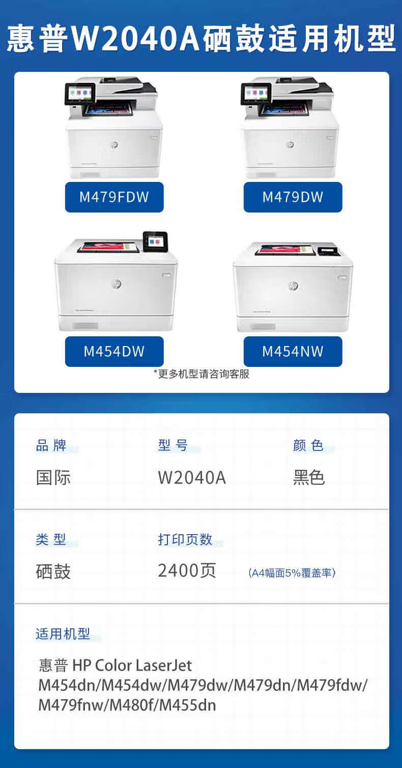国际 W2040A 硒鼓 适用惠普硒鼓479fdw惠普打印机479dwW2040A墨盒m454dw M480f W2040A易加粉硒鼓 黑色(带芯片)