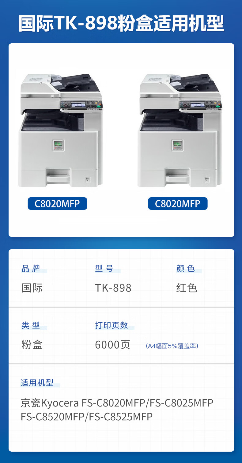 国际 TK-898M 粉盒 适用京瓷8020粉盒FS-C8025碳粉C8520 FS-C8525mfp墨盒 TK898大容量墨粉盒 红色 6000页