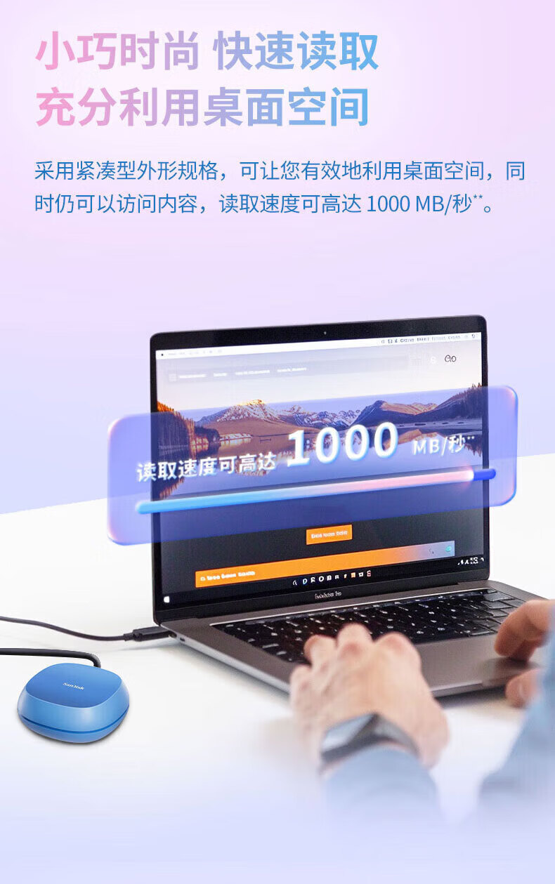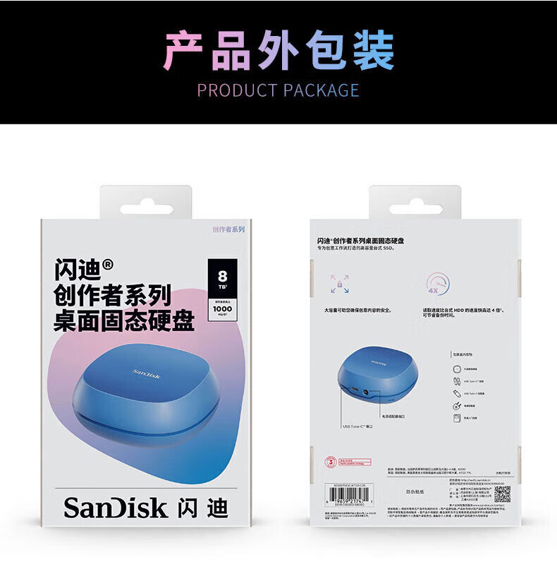 闪迪/SanDisk SDSSDT40C-8T00-C25 移动硬盘 桌面固态硬盘 Type-c USB3.2接口