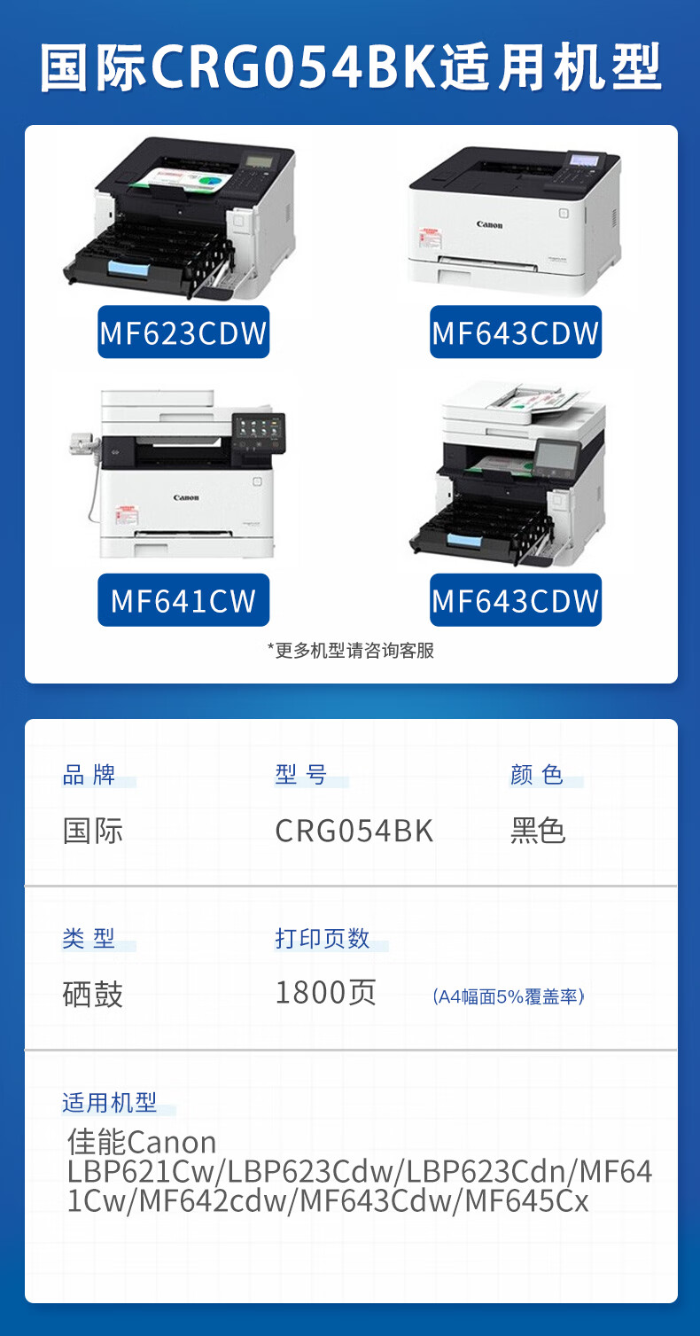 国际 CRG-054BK 硒鼓 适用佳能645cx硒鼓MF645CX mf643cdwLBP621cwLBP623 CRG054 CRG-054BK黑色硒鼓【1800页】