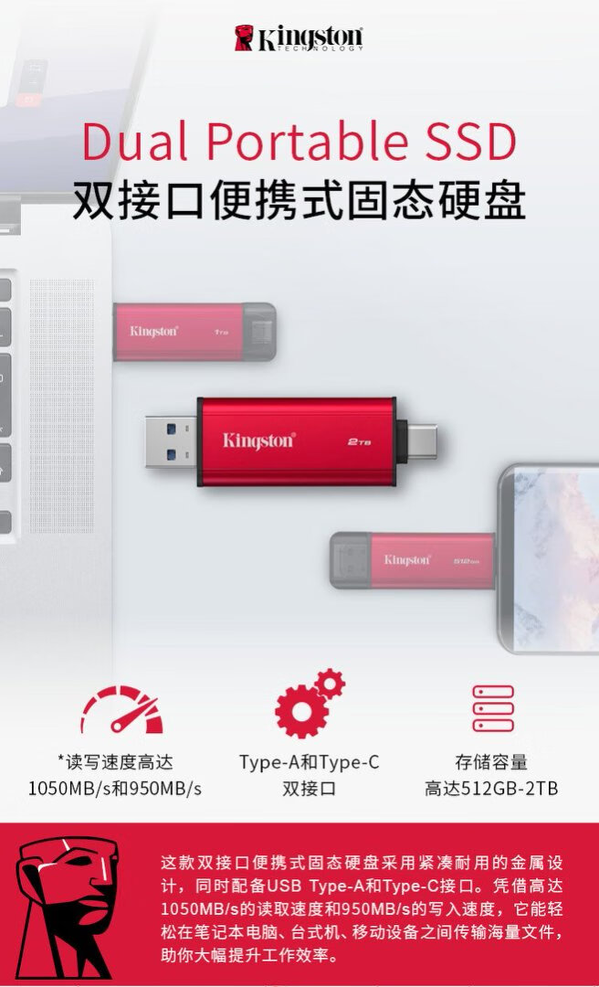 金士顿/Kingston SPSD 512G 移动硬盘 双接口便携式固态硬盘