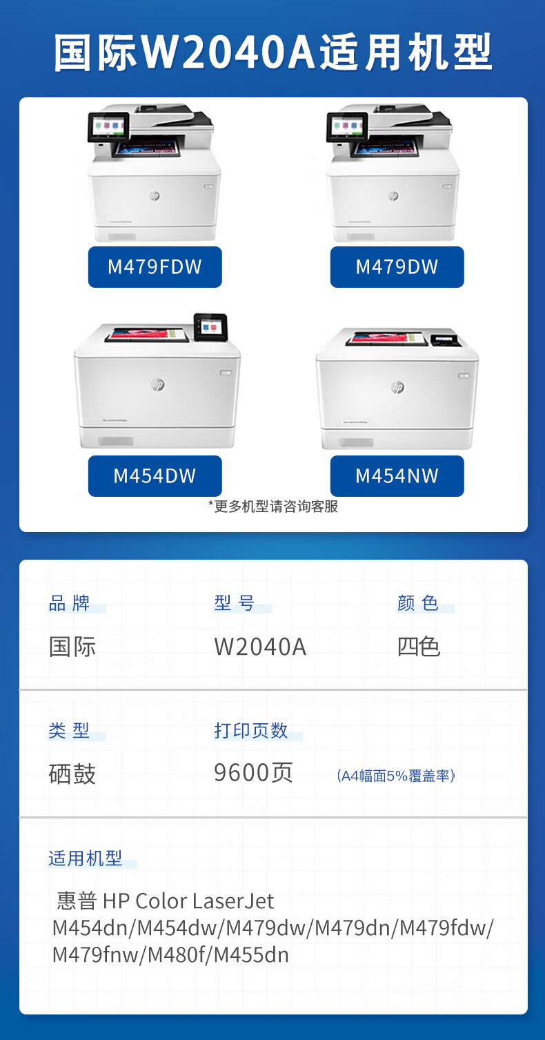 国际 W2040A 硒鼓 适用惠普硒鼓479fdw惠普打印机479dwW2040A墨盒m454dw M480f店长推荐W2040A四色硒鼓套装带芯片