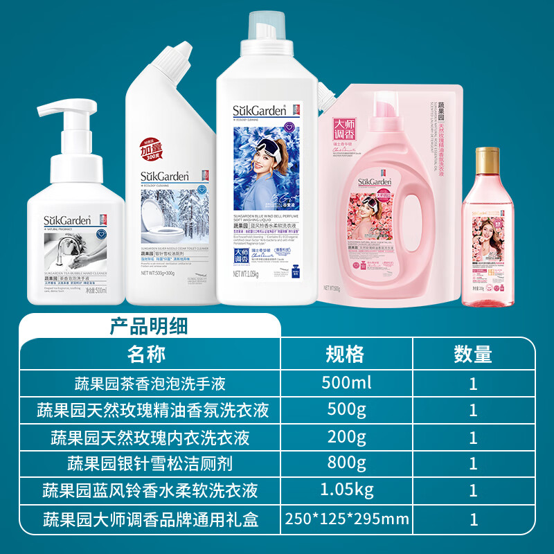 蔬果园/SUKGARDEN 3.05kg多用途清洁剂 玫瑰系列家庭清洁五件套