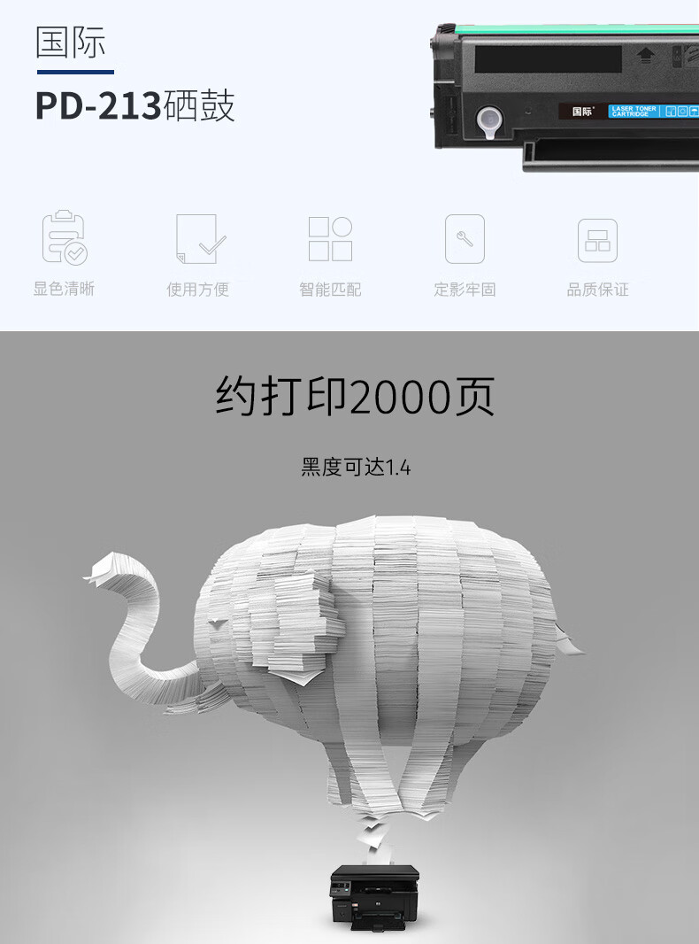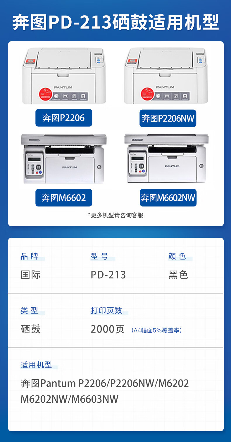 国际 PD-213 硒鼓 适用奔图PANTUM P2206NW墨盒M6202NW硒鼓易加粉M6603NW墨粉 【 加粉不换芯片】PD-213黑色硒鼓