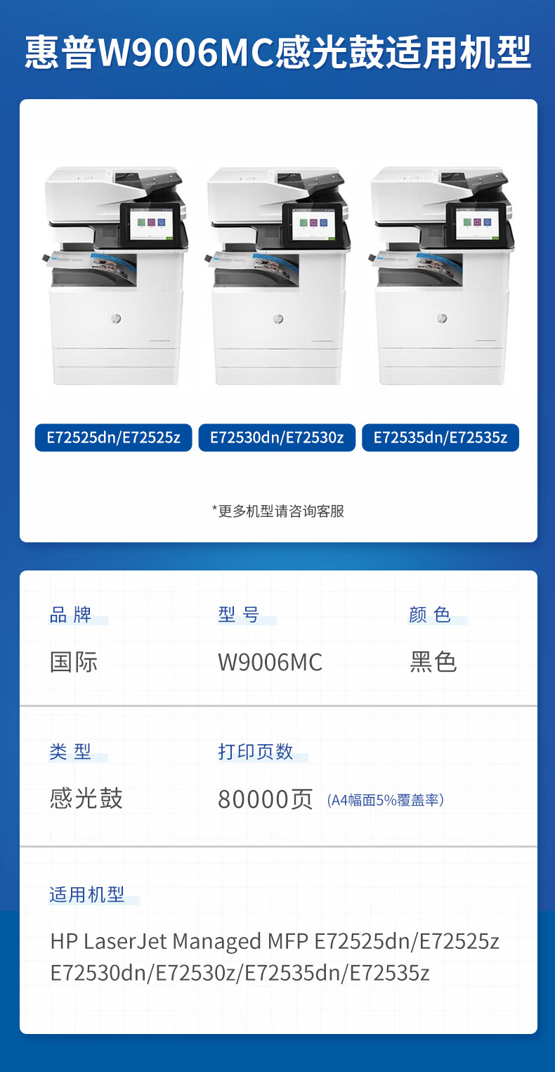 国际 W9006MC 硒鼓 适惠普HP MFP E72525dn/Z E72530Z E72535Z墨粉盒 W9006MC 感光鼓【约80000页】