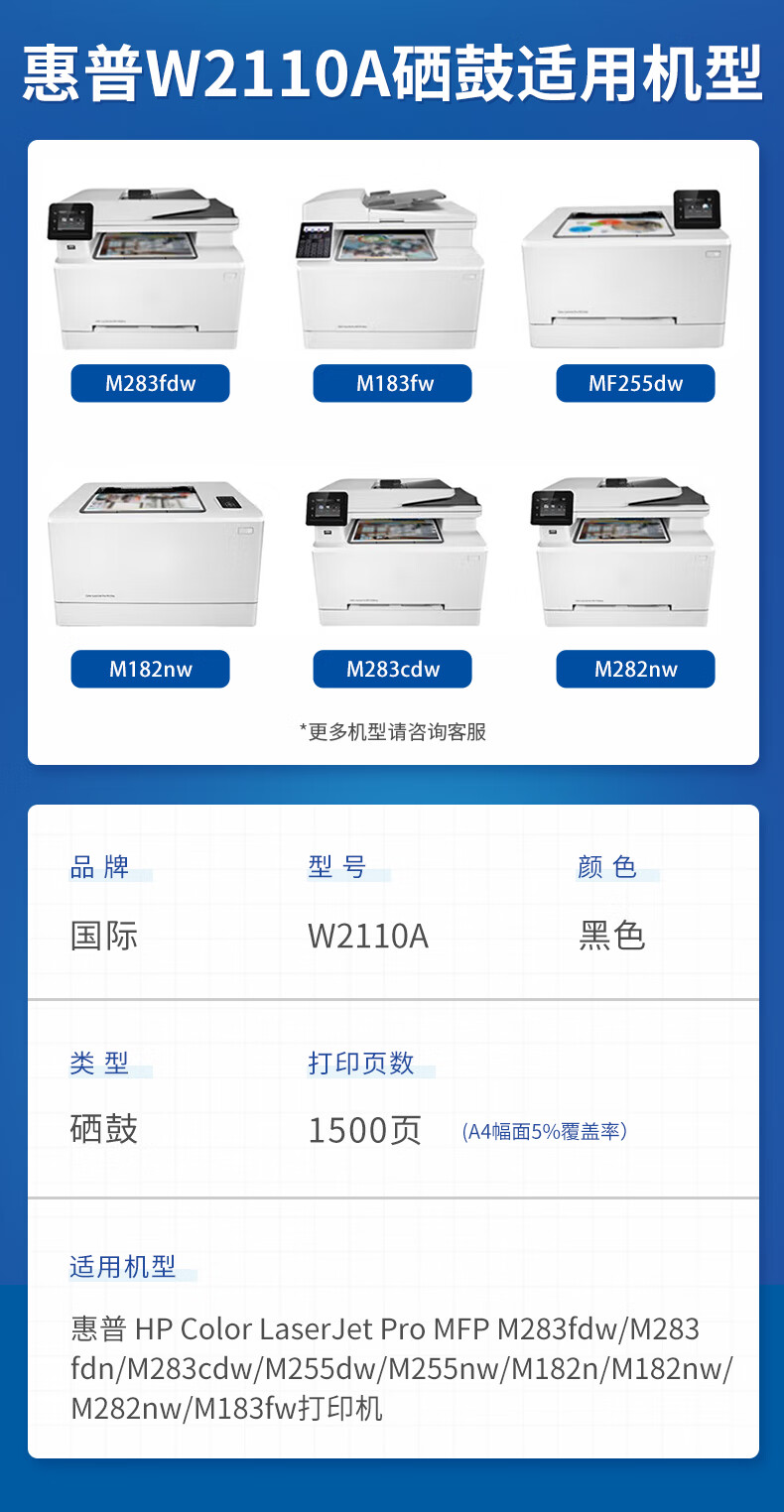 国际 W2110A 硒鼓 适用惠普M283fdw M282nw彩色墨粉仓M182n/nw m183fw打印机墨盒 W2110A黑色硒鼓(带芯片)
