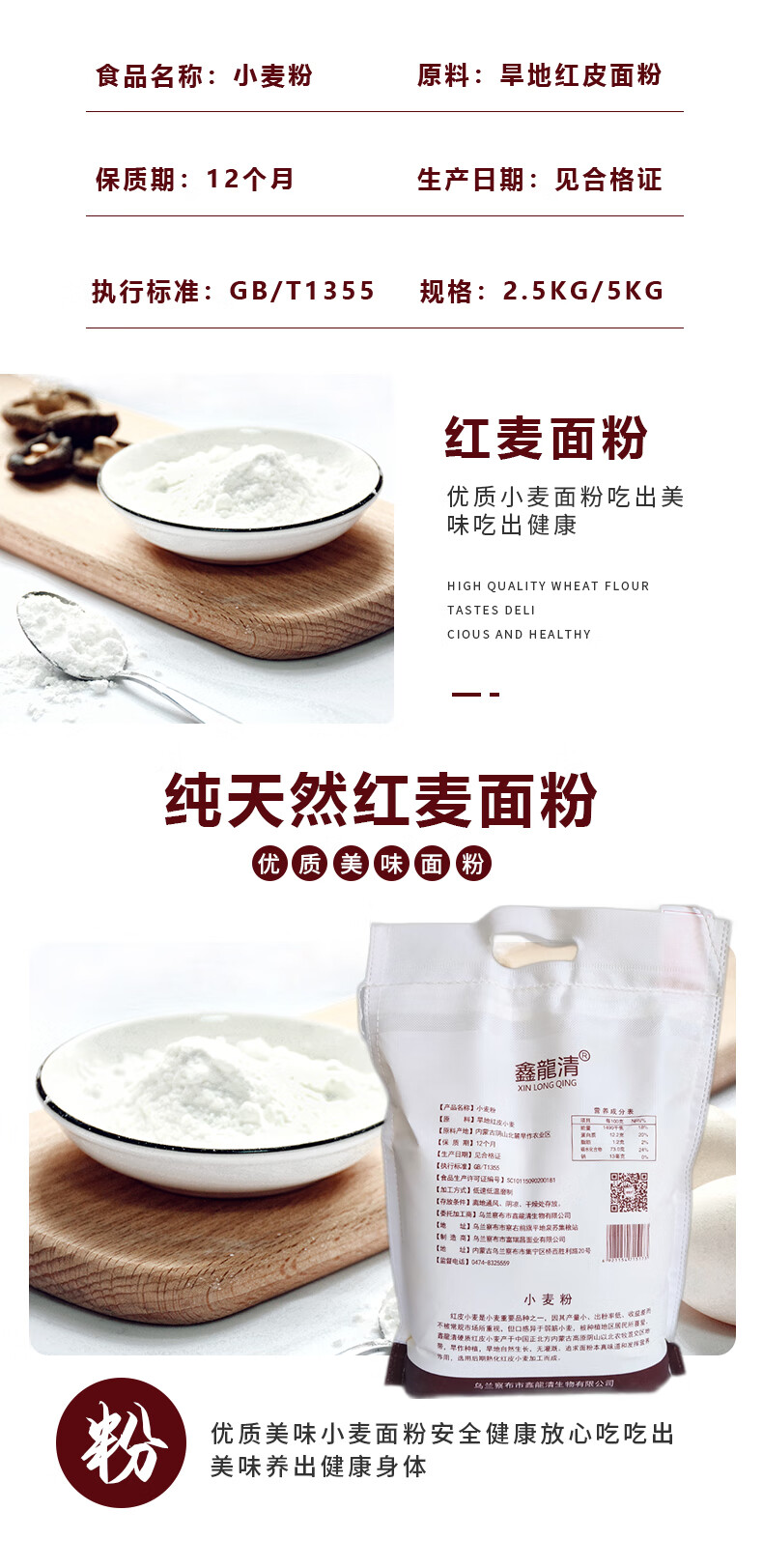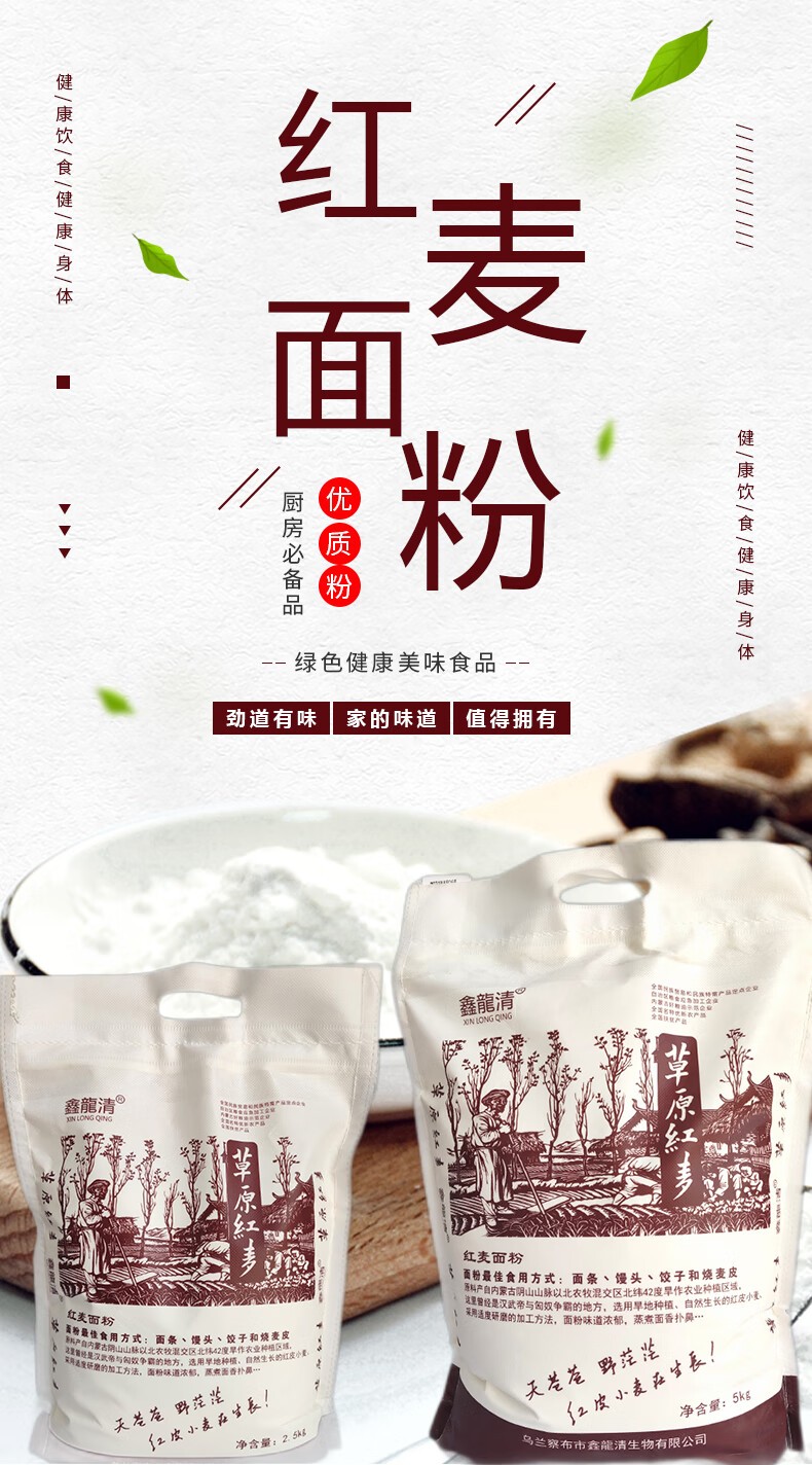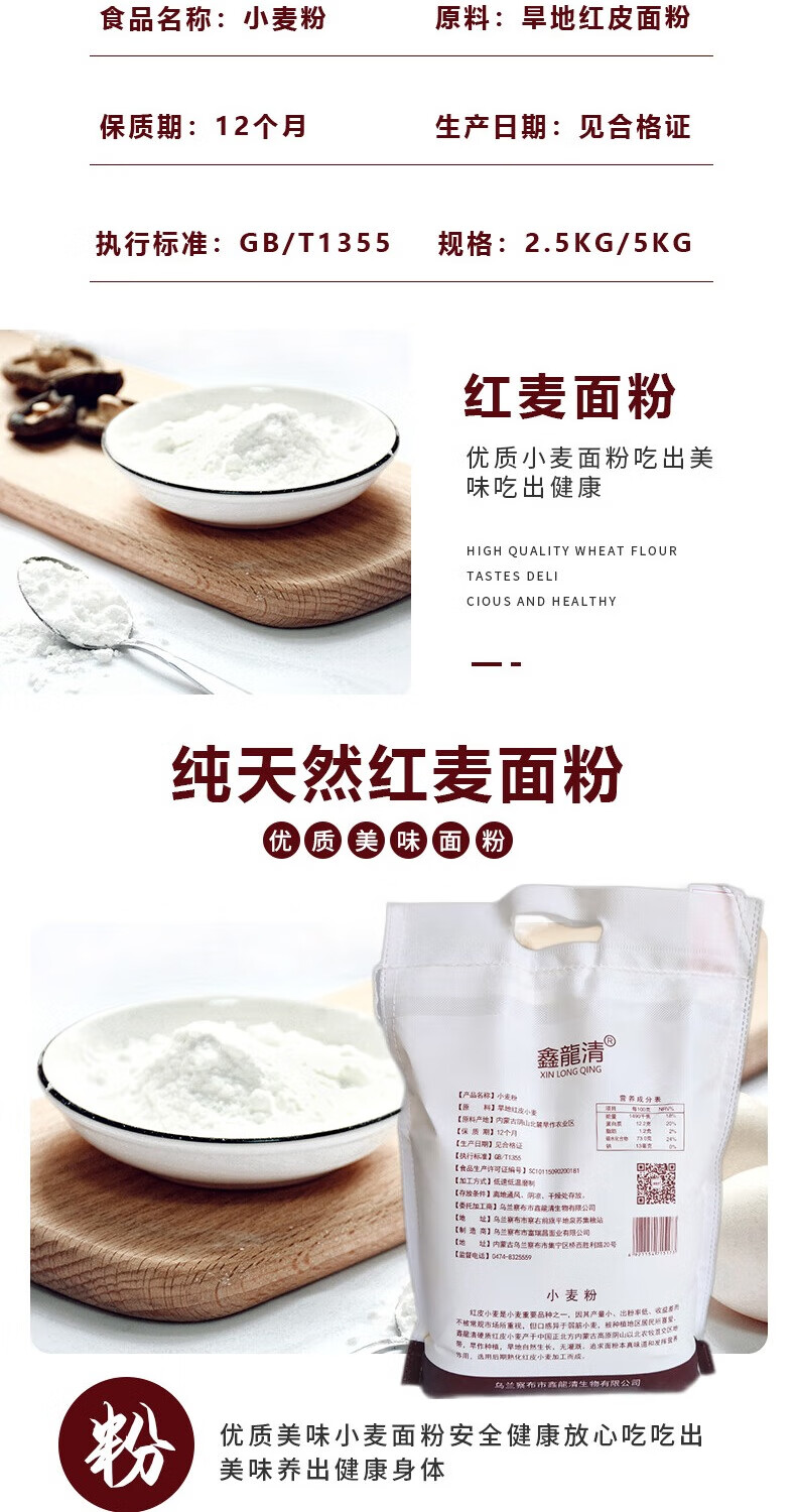 鑫龍清/- 5kg小麦面粉 红麦面粉5kg
